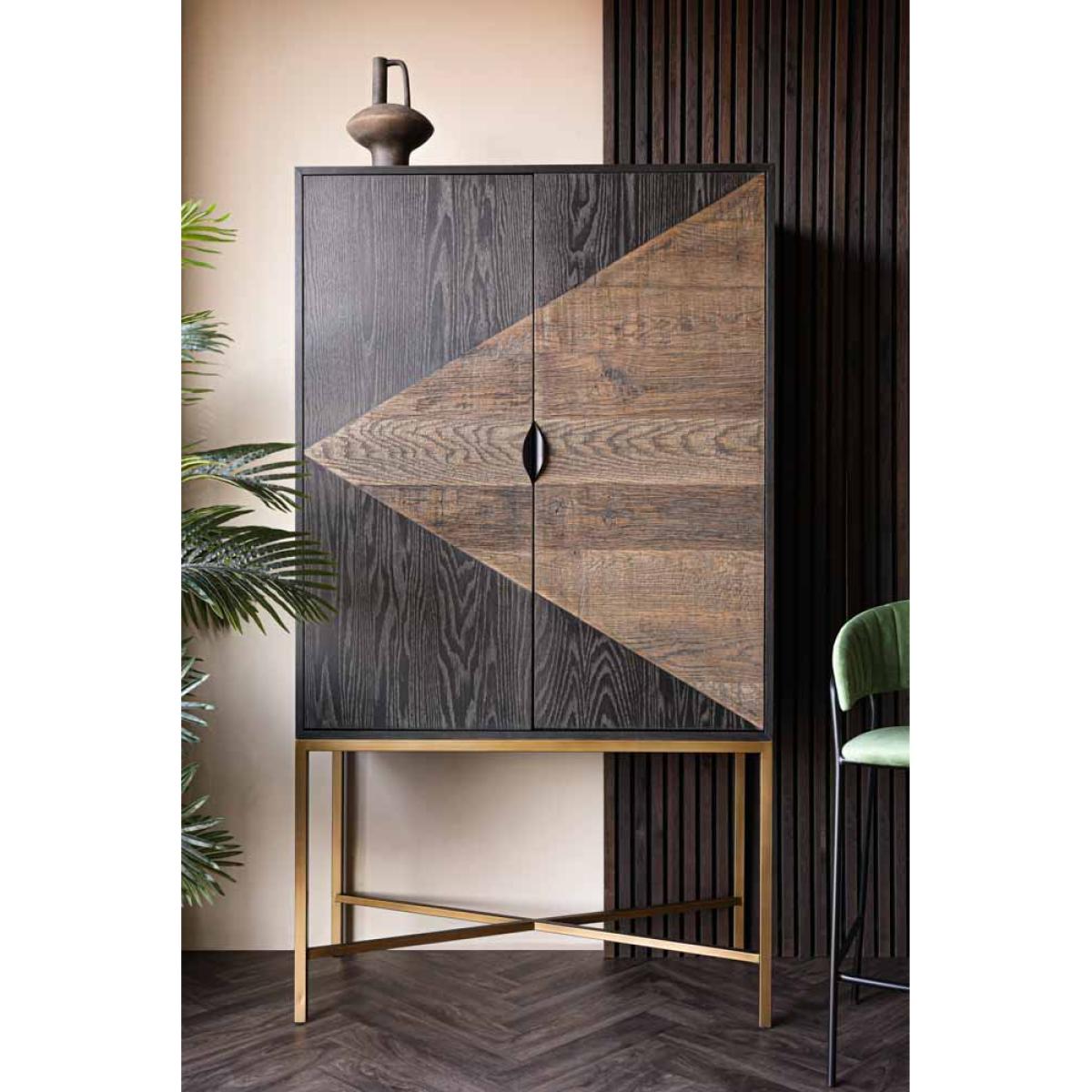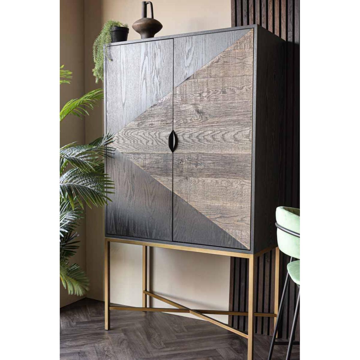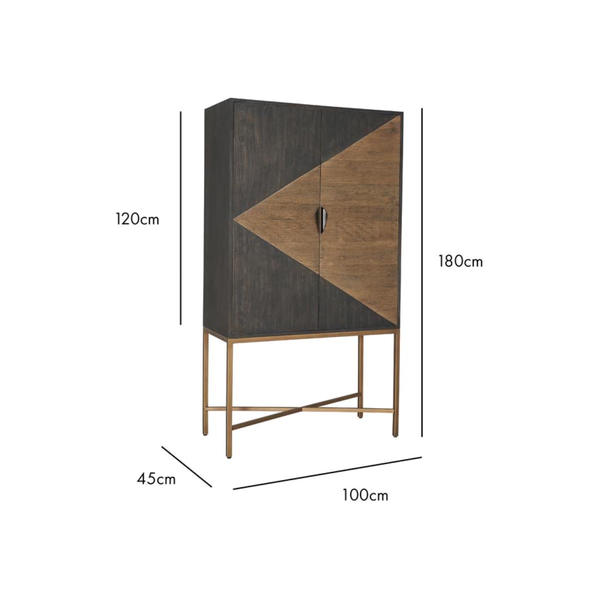 About The Brooklyn Black & Natural Oak Drinks CabinetA stunning piece of furniture that’ll dazzle all of your guests, the Brooklyn Black & Natural Oak Drinks Cabinet oozes sophistication and effortless style. This tall drinks cabinet is made from solid oak wood in a black and natural colourway with a dazzling mirrored interior, a glass shelf and two drawers. Setting you up for the best cocktail parties ever, this stylish cabinet also features five wine glass racks and an abundance of space to showcases your favourite tipples and decorative ornaments. This modern cocktail cabinet is a large piece of furniture but it gets away with not looking too chunky due to its glamorous gold elevated legs. This drinks cabinet measures 180cm in height, 100cm in width and 45cm in depth. Why We Think You’ll Love The Brooklyn Black & Natural Modern Drinks CabinetCreating a fun drinking and entertaining zone within your home all by itself, this cocktail cabinet exudes an urban New York-style design and colourway that’ll inject utter wow factor into your interior scheme. A showstopping piece of dining furniture that will not disappoint, this modern drinks cupboard is a spectacular forever piece for your home that invites charming character wherever you choose to style it, so what’s not to love?!Where To Style The Brooklyn Black & Natural Wooden Drinks CabinetThis oak drinks cabinet will transform your kitchen or living area oh-so marvellously, becoming the fabulous focal point of the room that is bursting with character wherever you choose to place it. To elevate the unforgettable look of this stylish drinks cabinet, pair it with a selection of quirky ornaments and elegant glassware such as cocktail glasses for a style spot to remember!