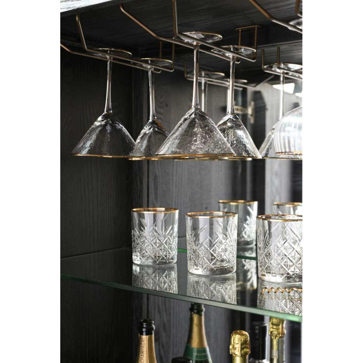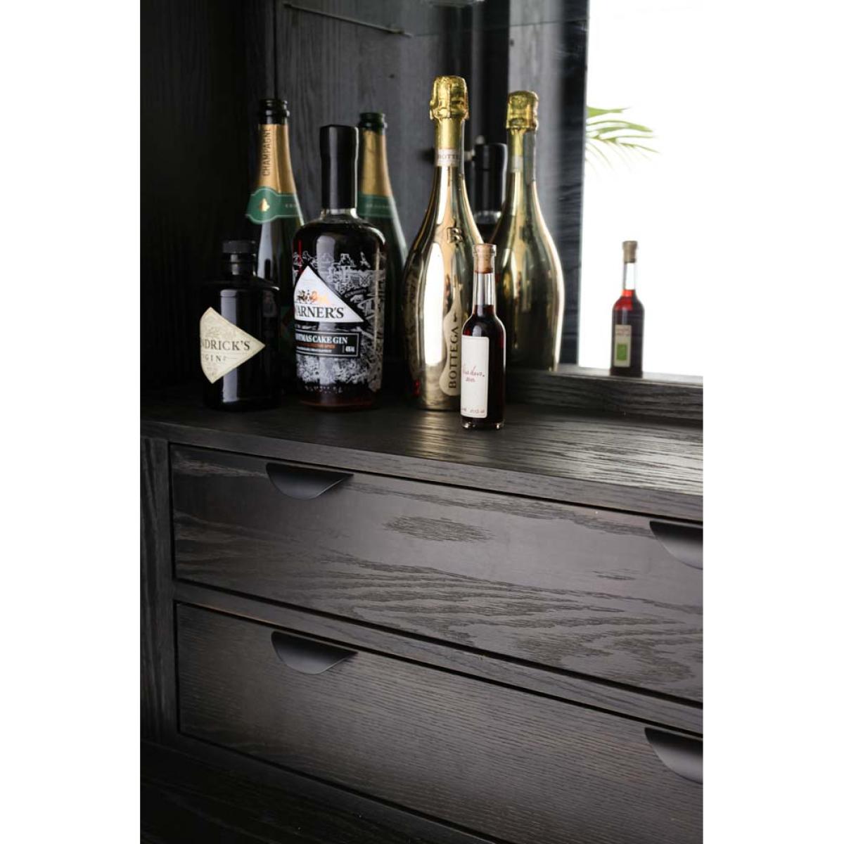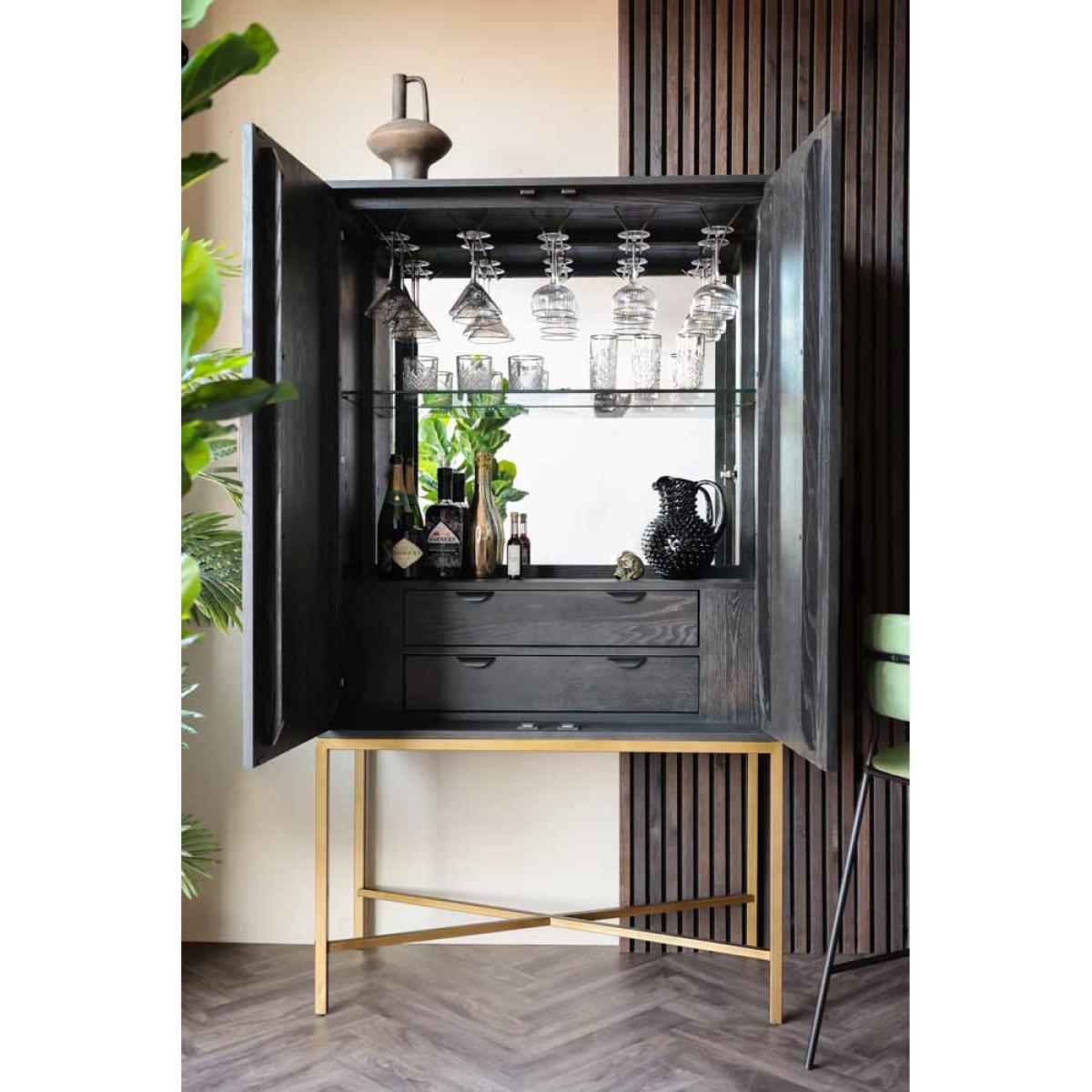 About The Brooklyn Black & Natural Oak Drinks CabinetA stunning piece of furniture that’ll dazzle all of your guests, the Brooklyn Black & Natural Oak Drinks Cabinet oozes sophistication and effortless style. This tall drinks cabinet is made from solid oak wood in a black and natural colourway with a dazzling mirrored interior, a glass shelf and two drawers. Setting you up for the best cocktail parties ever, this stylish cabinet also features five wine glass racks and an abundance of space to showcases your favourite tipples and decorative ornaments. This modern cocktail cabinet is a large piece of furniture but it gets away with not looking too chunky due to its glamorous gold elevated legs. This drinks cabinet measures 180cm in height, 100cm in width and 45cm in depth. Why We Think You’ll Love The Brooklyn Black & Natural Modern Drinks CabinetCreating a fun drinking and entertaining zone within your home all by itself, this cocktail cabinet exudes an urban New York-style design and colourway that’ll inject utter wow factor into your interior scheme. A showstopping piece of dining furniture that will not disappoint, this modern drinks cupboard is a spectacular forever piece for your home that invites charming character wherever you choose to style it, so what’s not to love?!Where To Style The Brooklyn Black & Natural Wooden Drinks CabinetThis oak drinks cabinet will transform your kitchen or living area oh-so marvellously, becoming the fabulous focal point of the room that is bursting with character wherever you choose to place it. To elevate the unforgettable look of this stylish drinks cabinet, pair it with a selection of quirky ornaments and elegant glassware such as cocktail glasses for a style spot to remember!