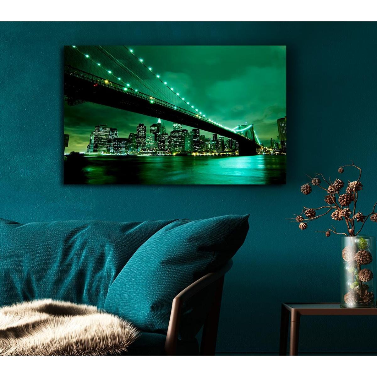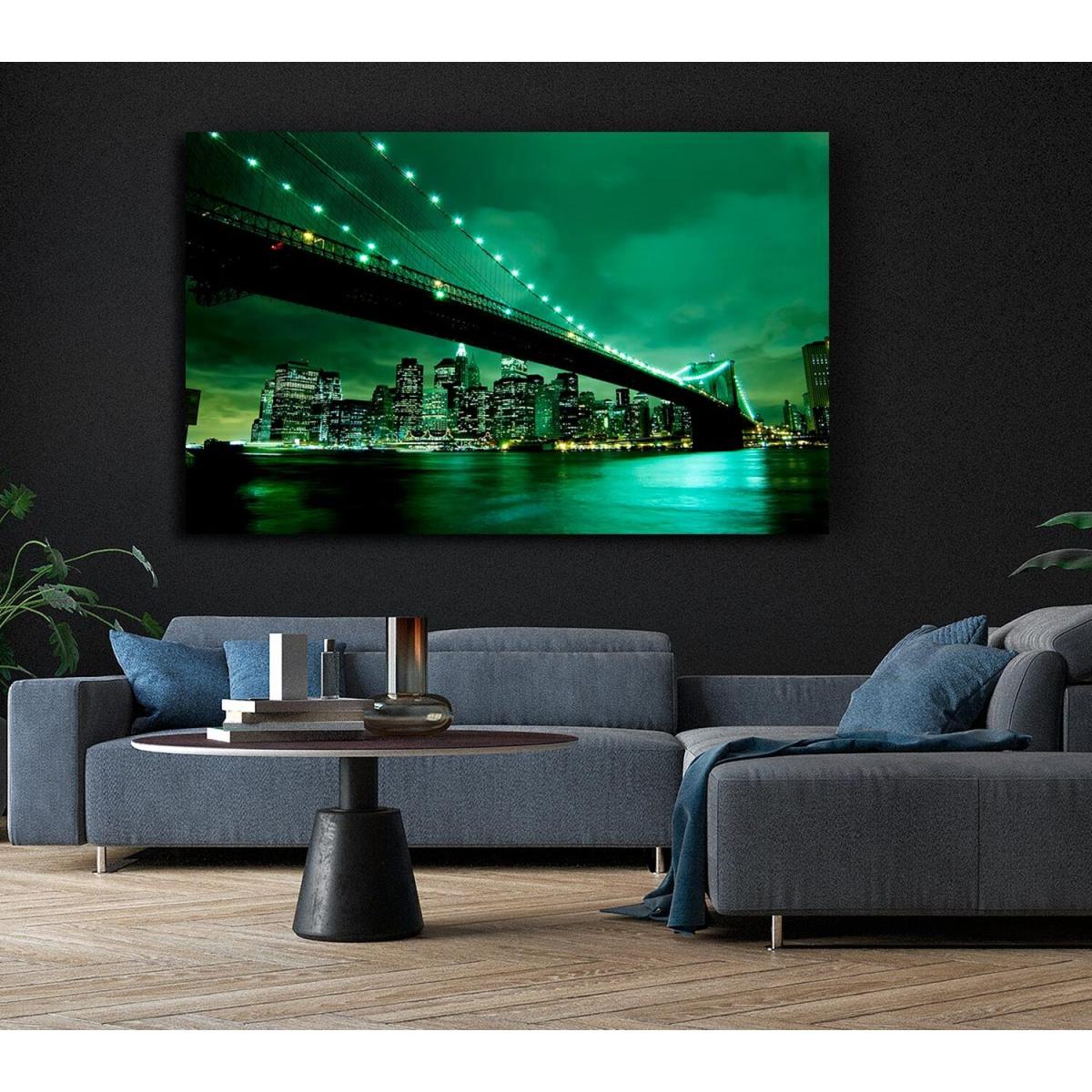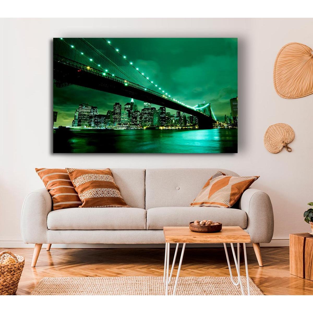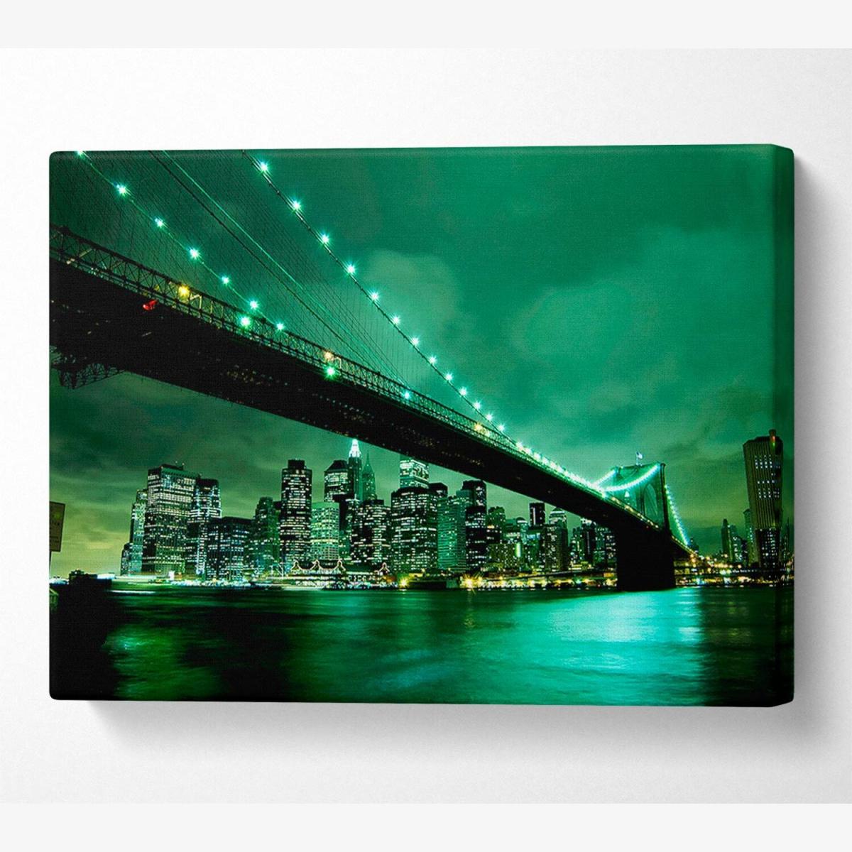 Brooklyn Bridge New York Green Cast Canvas Print Wall Art - Yellow / 81.28cm