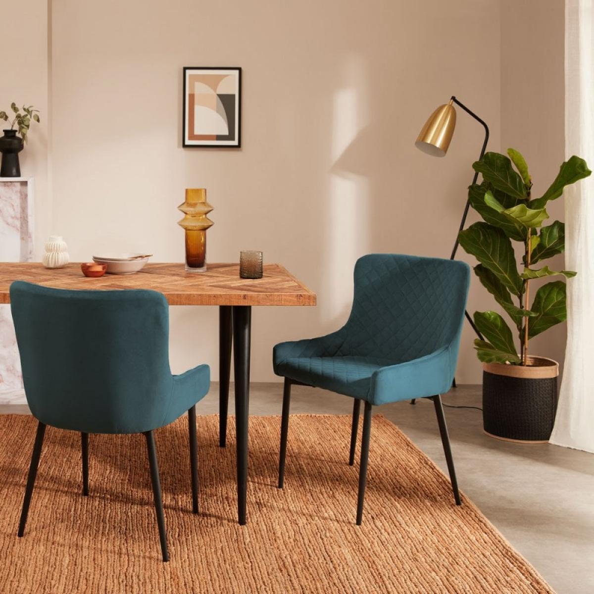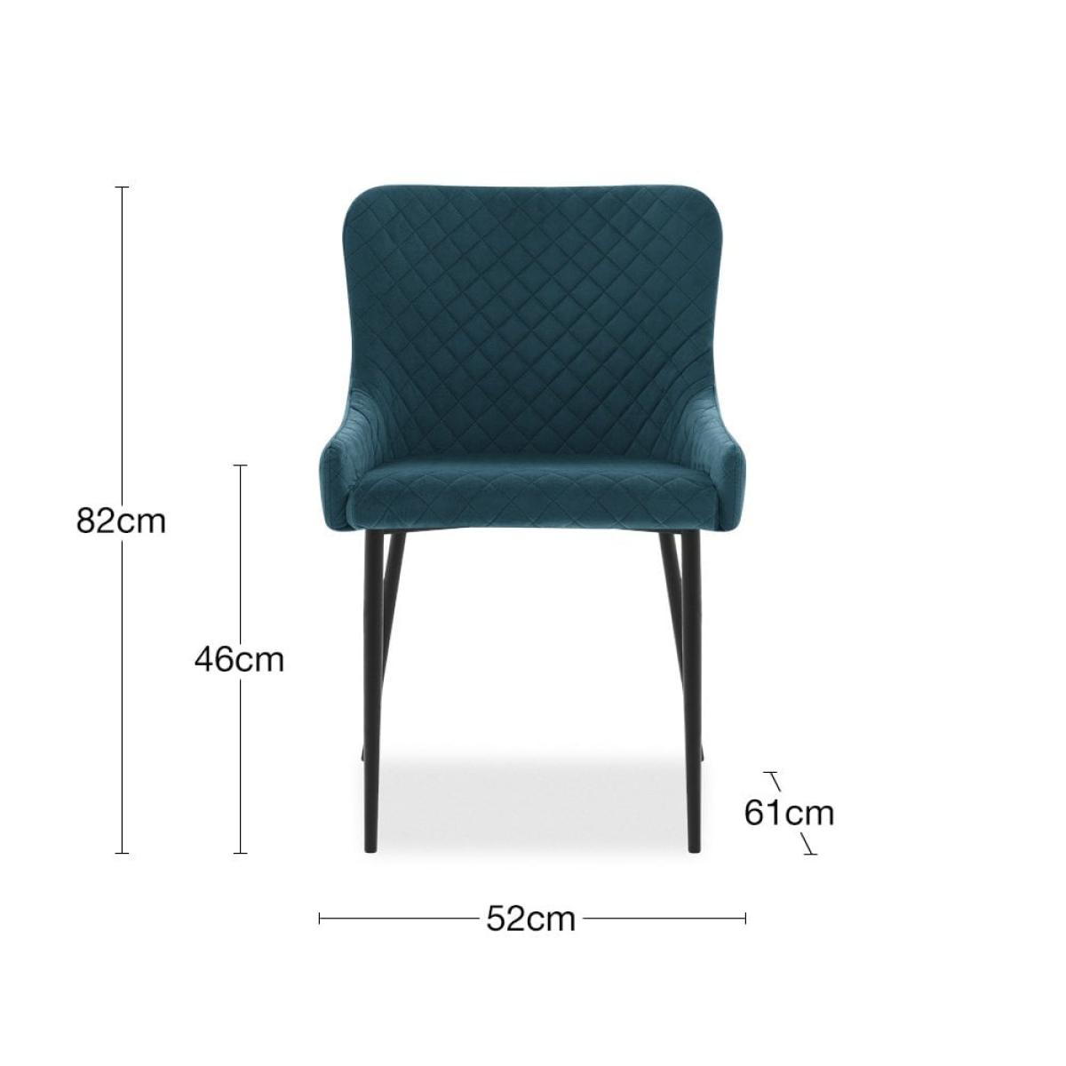I love this chair for its rich midnight blue velvet upholstery, which adds a luxe touch without feeling overly formal. It works particularly well in contemporary and modern interiors, especially when paired with brass accents or dark wood finishes. For styling tips, try mixing it with neutral tableware and minimalist table settings to let the vibrant colour shine, or team it with patterned cushions for added texture and visual interest. Its slim, tapered legs lend a sleek aesthetic, making it a versatile addition that balances comfort with style-perfect for both everyday dining and more dressed-up occasions.