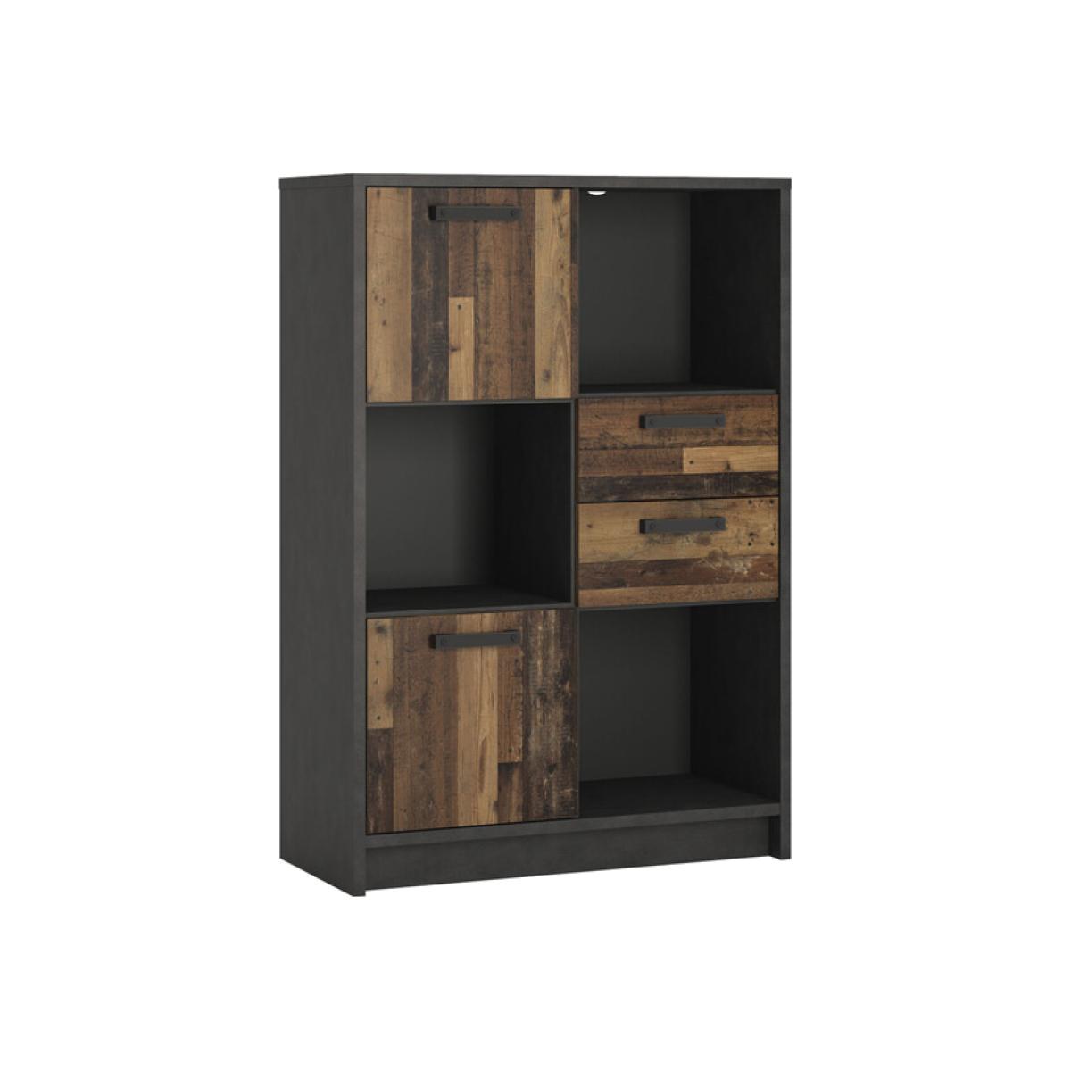 In an industrial design, this Brooklyn Low Bookcase will work perfectly in any modern home. With plenty of storage space, including two doors and two drawers, this bookcase can be used to store games, clothes, books, DVDs and much more. Part of the Brooklyn collection, this bookcase is made with laminated chipboard which is resistant to scratches, damage, moisture and high temperatures.