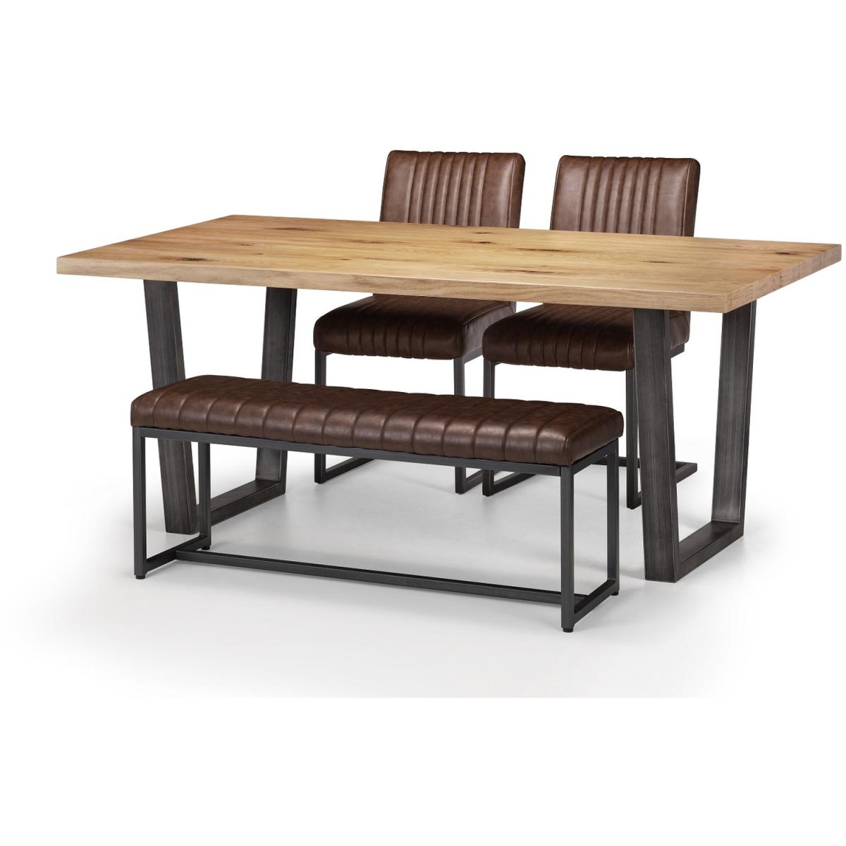 Made from solid oak, this dining table offers a rustic finish emphasising the stunning natural wood grain. The Brooklyn Dining Table offers a vintage edge featuring industrial trapeze style metal legs. This spacious table can seat up to 6 people, perfect for a wide range of modern decor. Part of the Julian Bowen Brooklyn Dining and Occasional Collection.