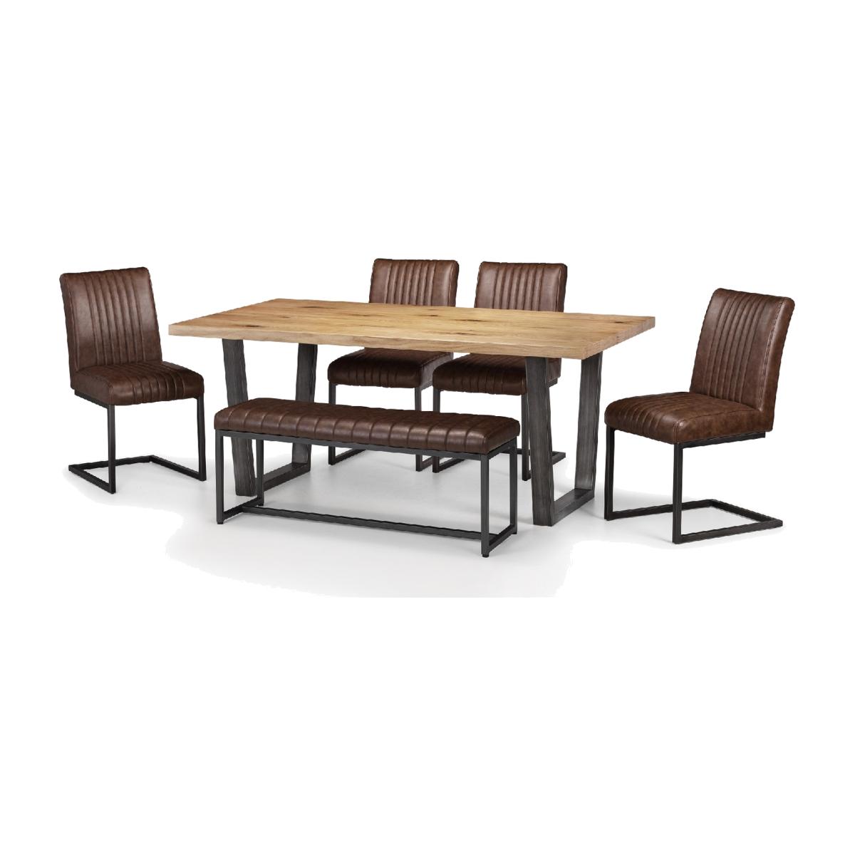 Brooklyn Oak Rectangular Table, Upholstered Bench and Chairs Set - Brown / 1 Table, 1 Bench and 4 Chairs