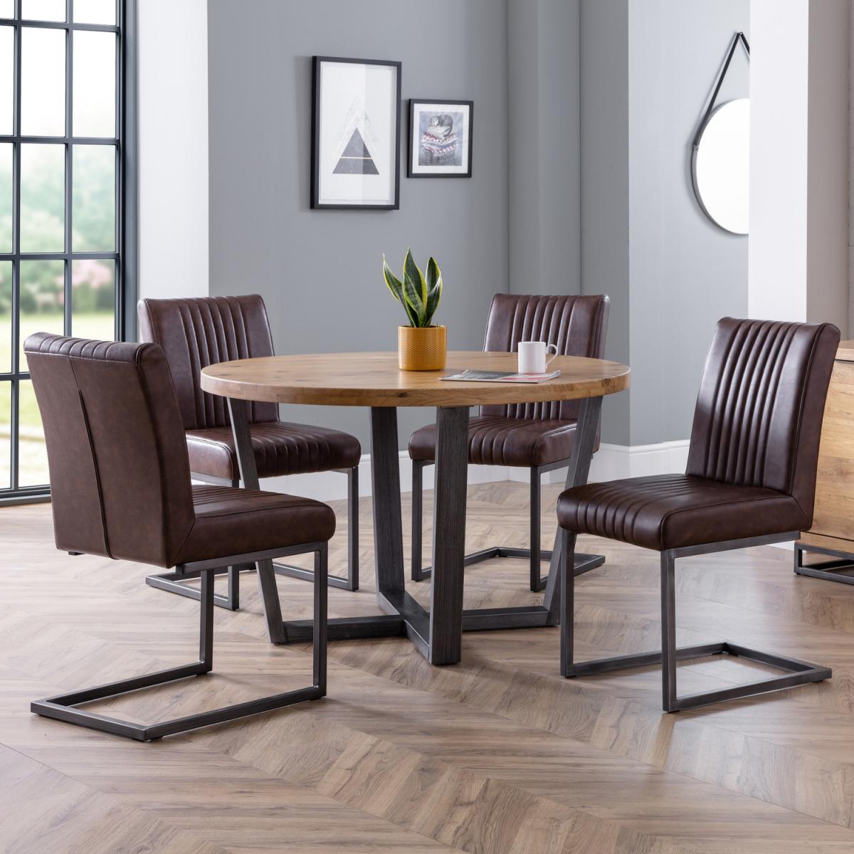 Brooklyn Oak Round Table and Brooklyn Chairs Set - Brown