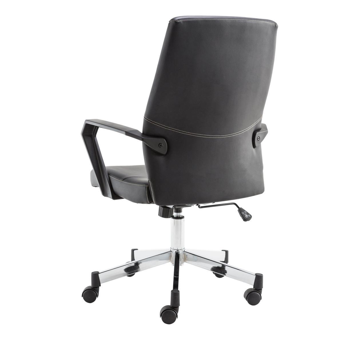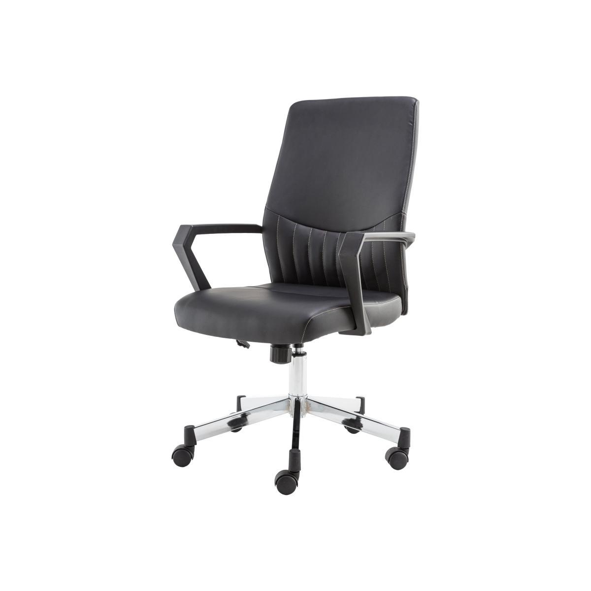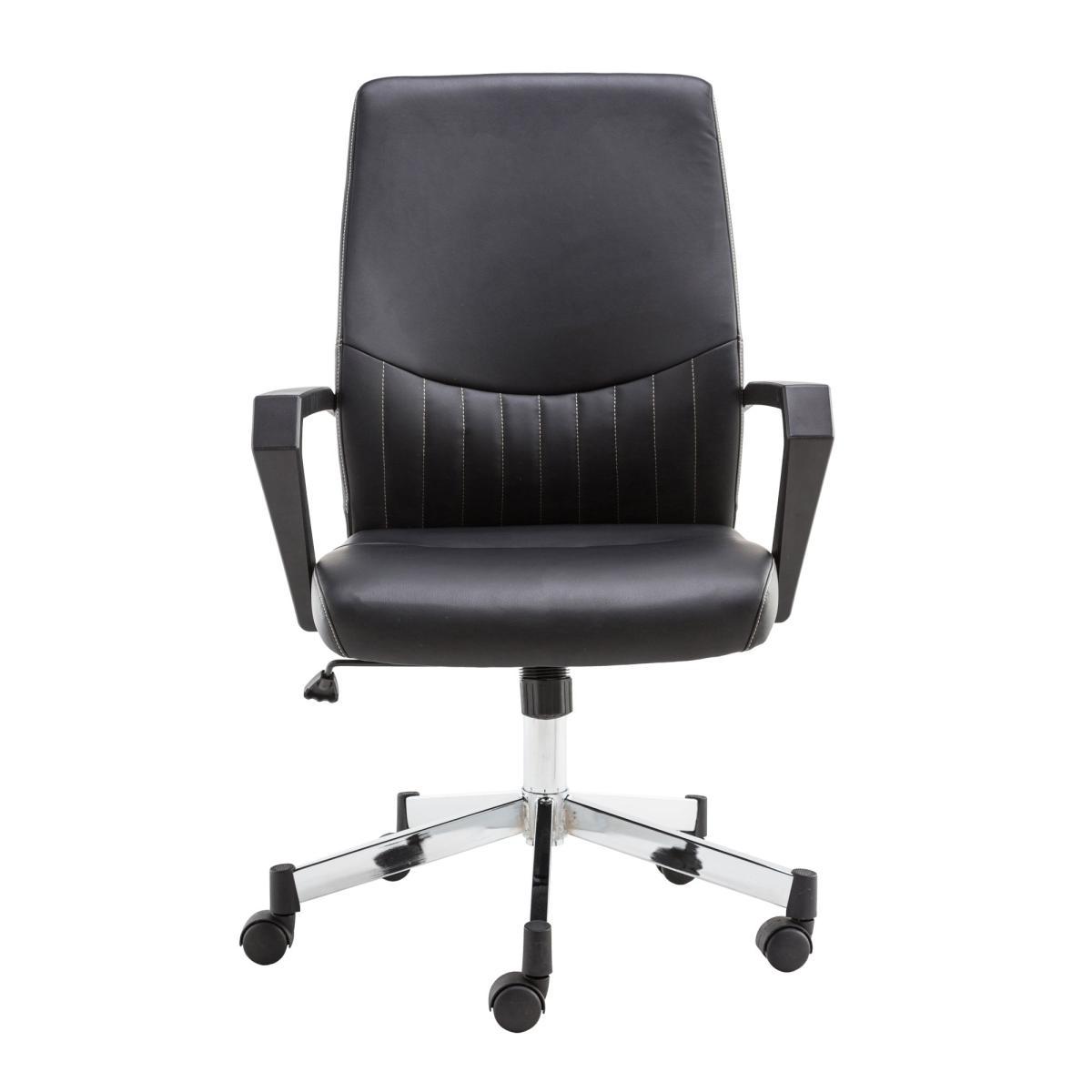 Designed with both style and comfort in mind, the Brooklyn office chair features a contemporary design boasting a mix of curved edges and striking angled legs and armrests. The ergonomically shaped backrest and foam padded seat are upholstered in a black faux leather with a gorgeous silver stitching detail, offering plenty of comfort and support. Finished off with a modern chrome base and a tilt mechanism with tension control, this self-assembly office chair would make a stunning addition to your home office. Please note, unfortunately we cannot deliver this item to Northern Ireland or the Channel Islands.