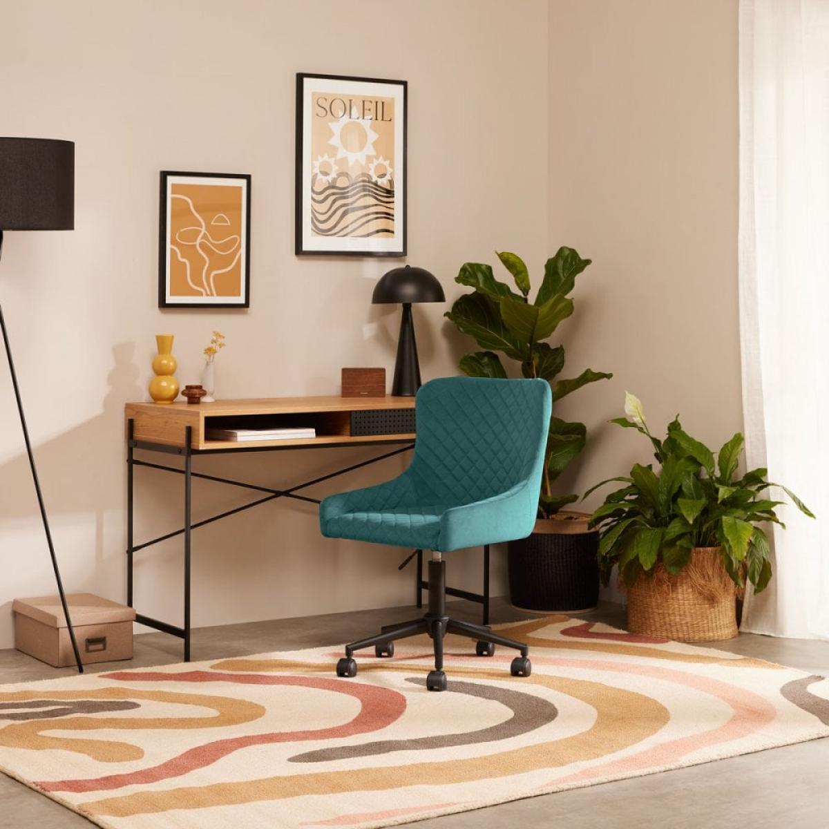 This teal velvet chair offers a great blend of comfort and style, making it a versatile choice for various interiors. I love how the rich colour and textured quilting bring a touch of luxe to a home office or a contemporary workspace. It works well in modern, minimal, or even eclectic interiors, especially when paired with neutral or wooden accents to let the colour pop. Practical styling tips include combining it with sleek desks or pairing it with softer textiles like throws and cushions for a cosy feel. Its vibrant hue also makes it an eye-catching standalone statement piece that can lift the overall aesthetic of a room.