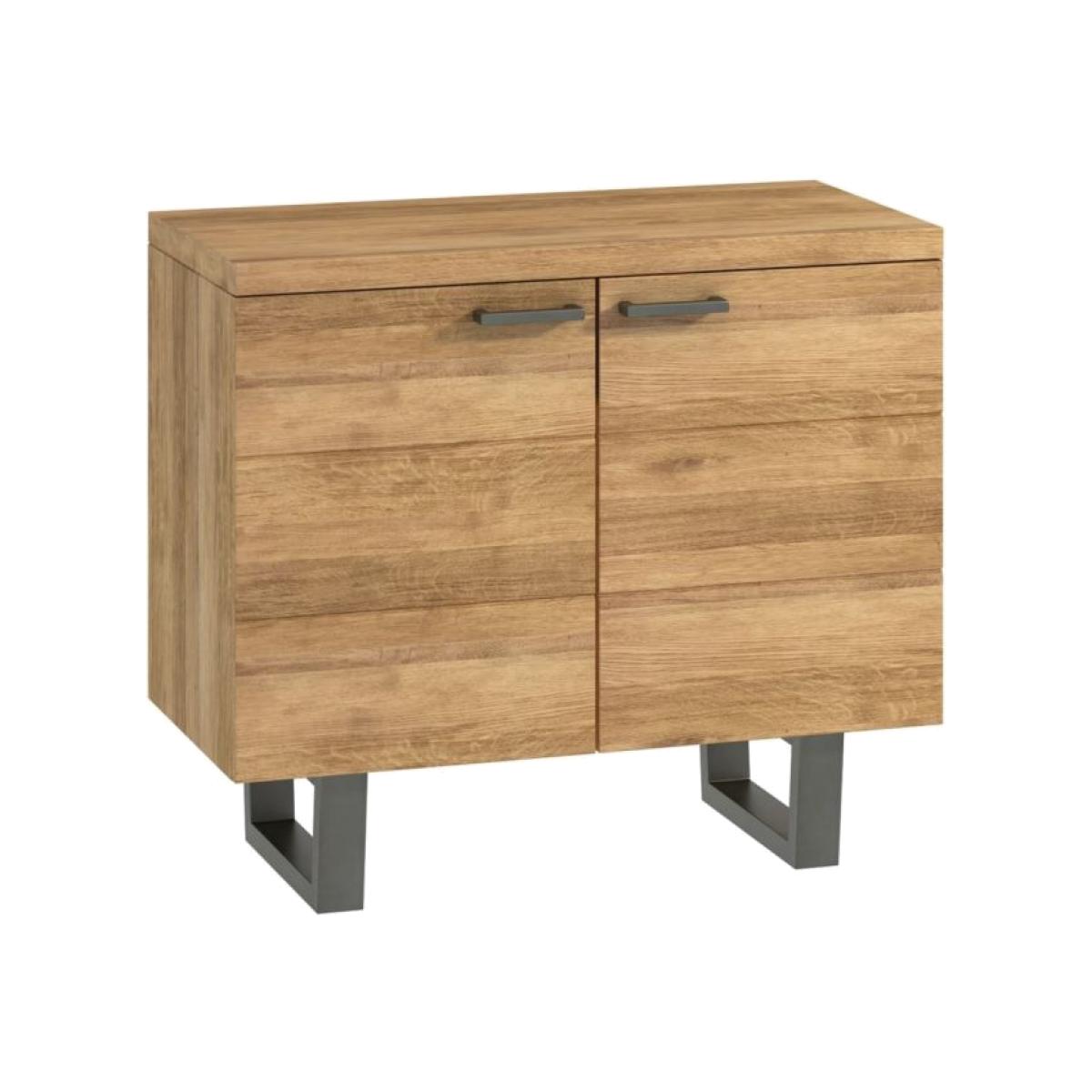 With clean lines and industrial styling, the Brooklyn collection combines a rustic oiled oak top and burnished metal accents for a modern yet relaxed feel. The knots and imperfections in the wood contrast with the crisp metal to help you create a sophisticated look in your home. Designed with a mix of modern and traditional influences to create a streamlined and contemporary look in your living space. Small 2 door sideboard Internal shelves for ample storage Burnished metal square legs Burnished metal handles Rustic oiled oak wood finish Designed with a blend of modern and traditional influences Delivered fully assembled. Dimensions - 82cm H x 93.2cm W x 45cm D