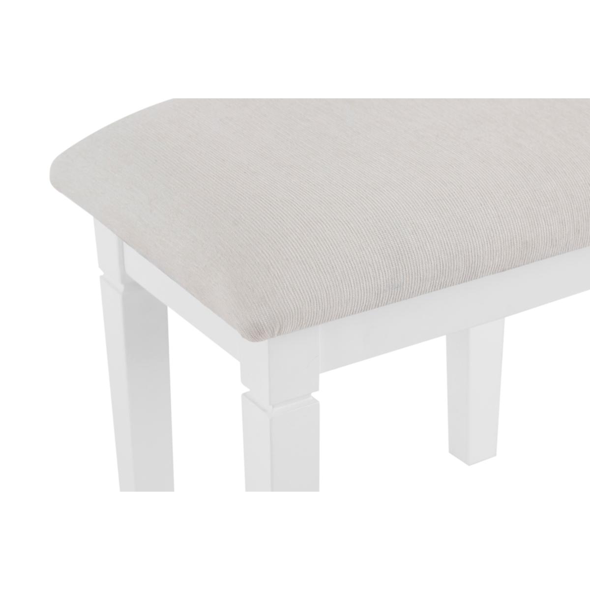 The Brooklyn White Dressing Table Stool complements the white dressing table and other items in the range. Featuring a sturdy wooden design with a crisp white painted finish, the stool is complete with a comfortable fabric seat. Stylish white dressing table stool Sturdy frame with smooth white painted finish Lightweight and easy to move around The perfect match for the white dressing table Effortlessly complements other pieces in the white bedroom furniture range