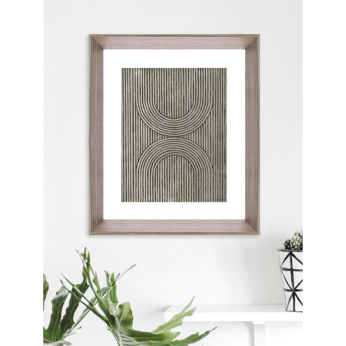 An abstract print made in the UK with a grained walnut wood-effect frame, ready to hang on your wall. Team with other 'Cedar Grooves' prints in this series to create your own gallery wall of abstract art. Have you thought about wall hooks and fittings?