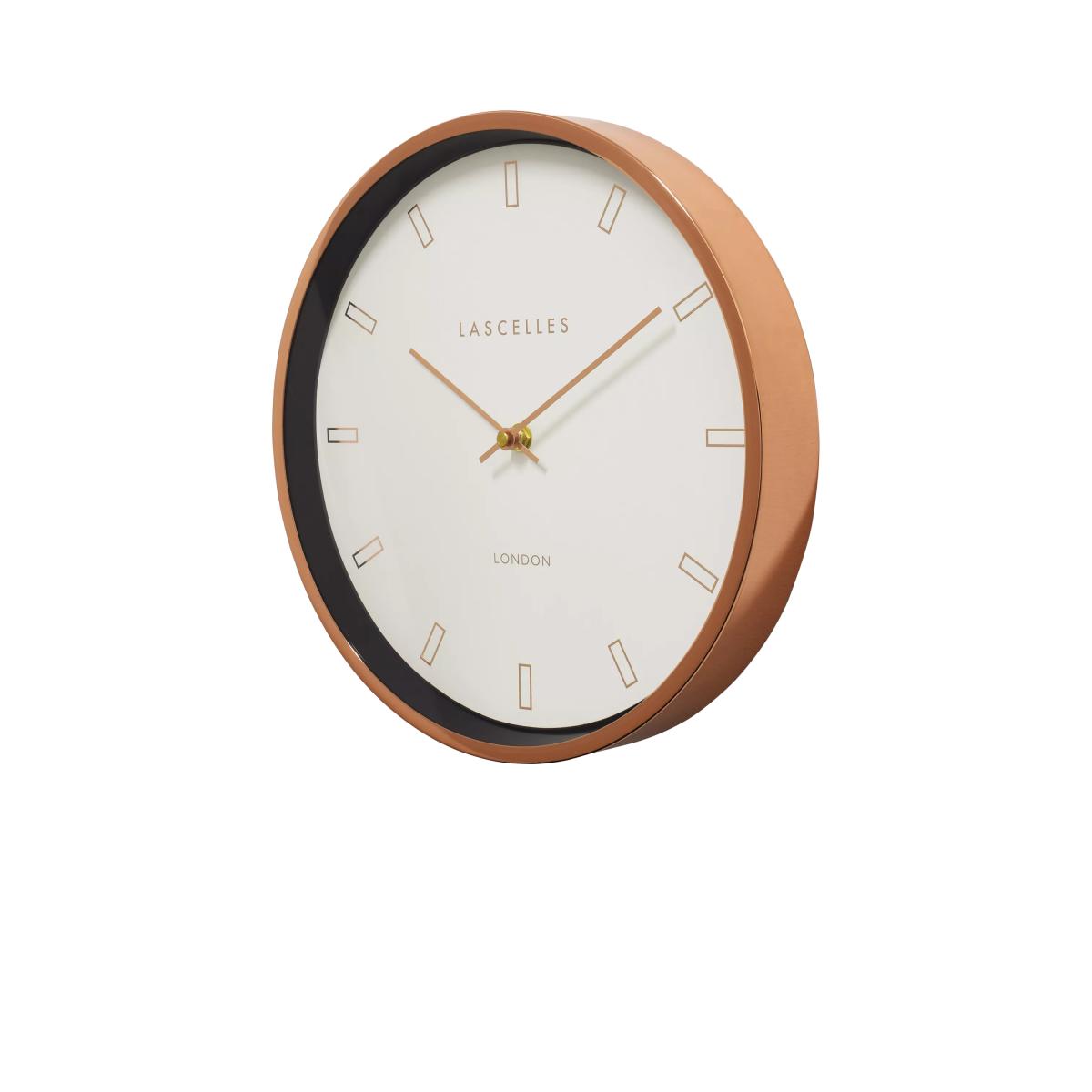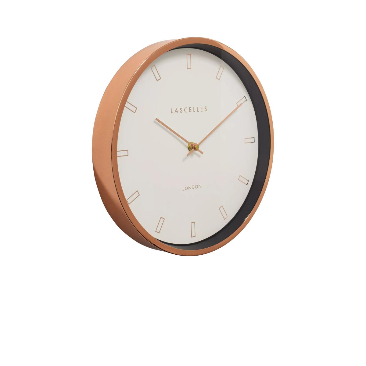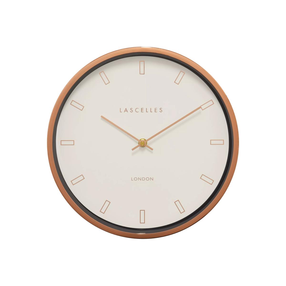 Inspired by a classic Lascelles analogue wall clock without numerals, this version has a rose gold case and white dial. The hands and metal foil-printed dial match the case colour, making this clock a bold addition to your decor, with a more updated look.