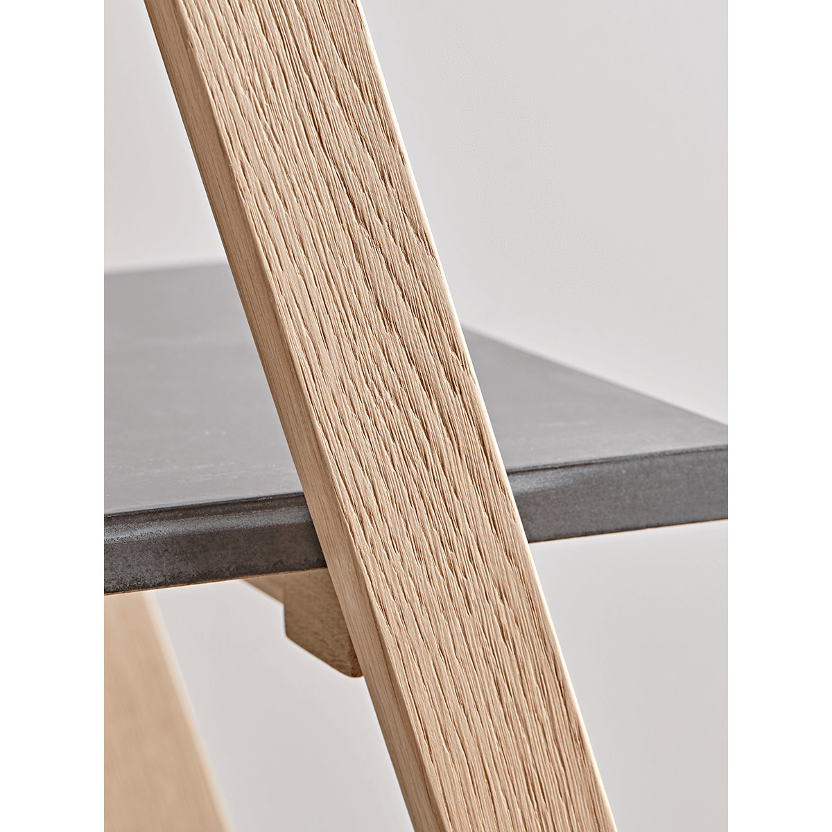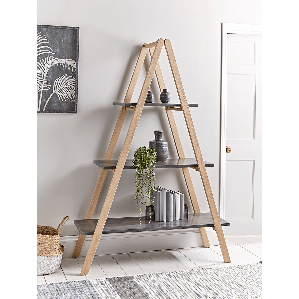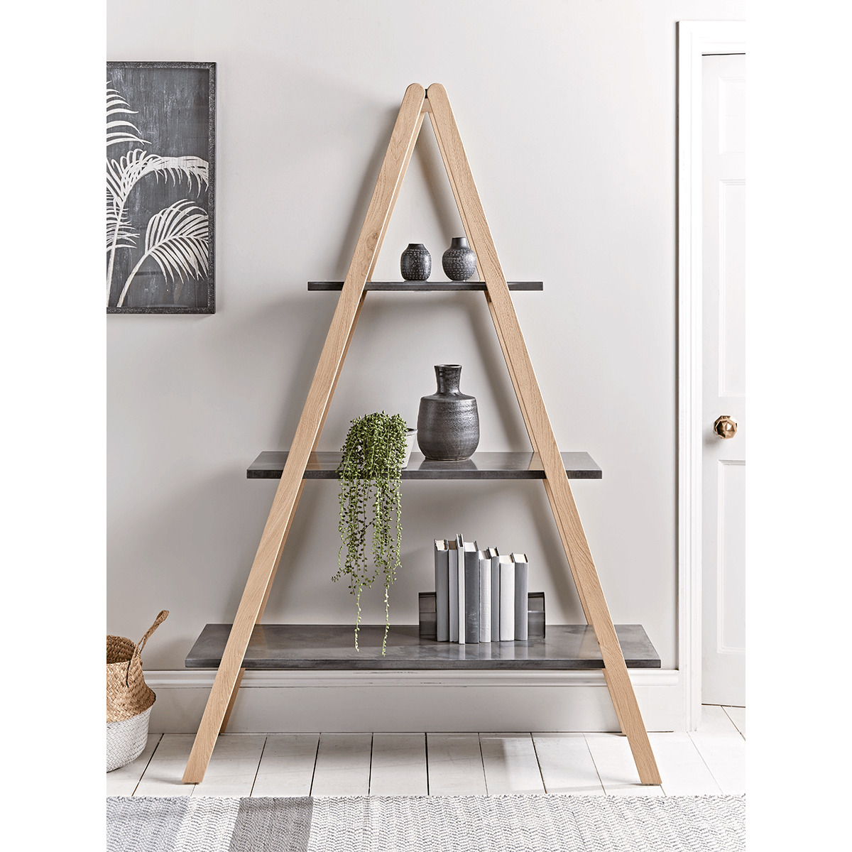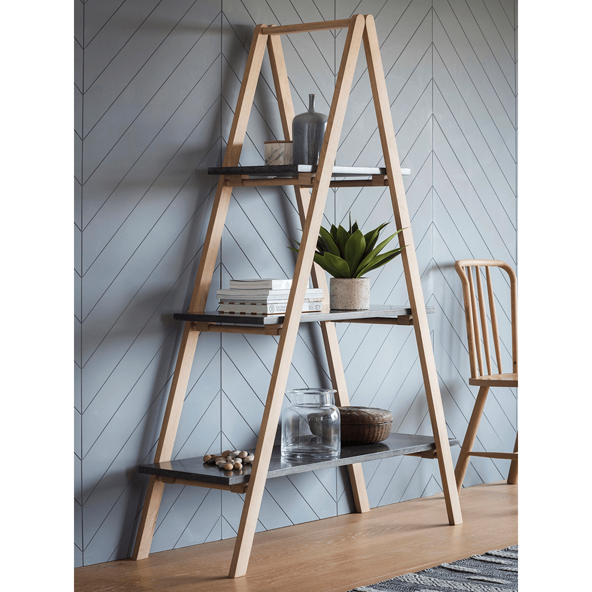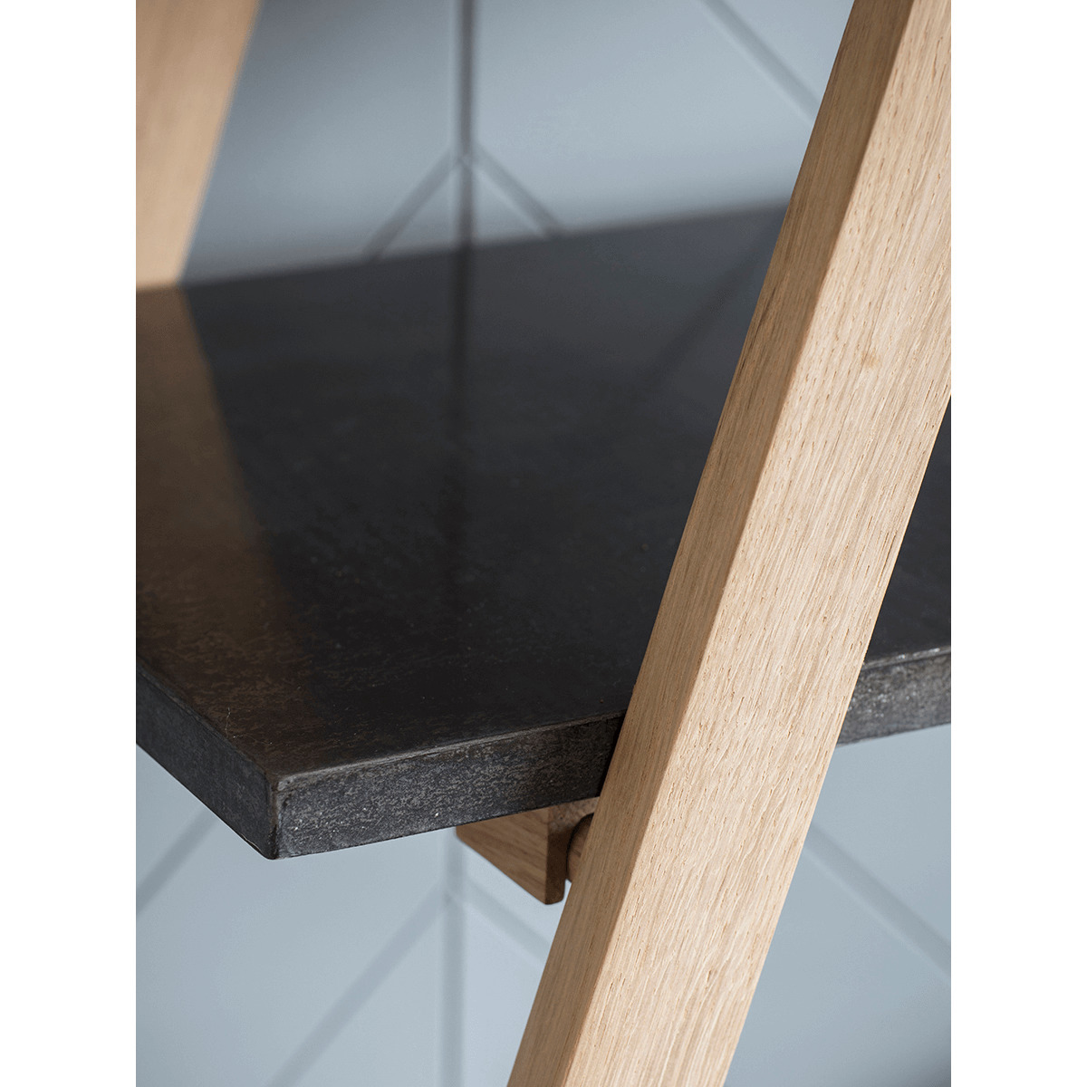 Our sturdy, solid frame shelf unit is crafted from graded oak, with three shelves made from a contrasting burnished resin, for the appearance of polished stone. A striking piece, with shelves of a generous depth, allowing for a versatility in its use and display. Use for books, plants and beautiful decorative accessories alike.