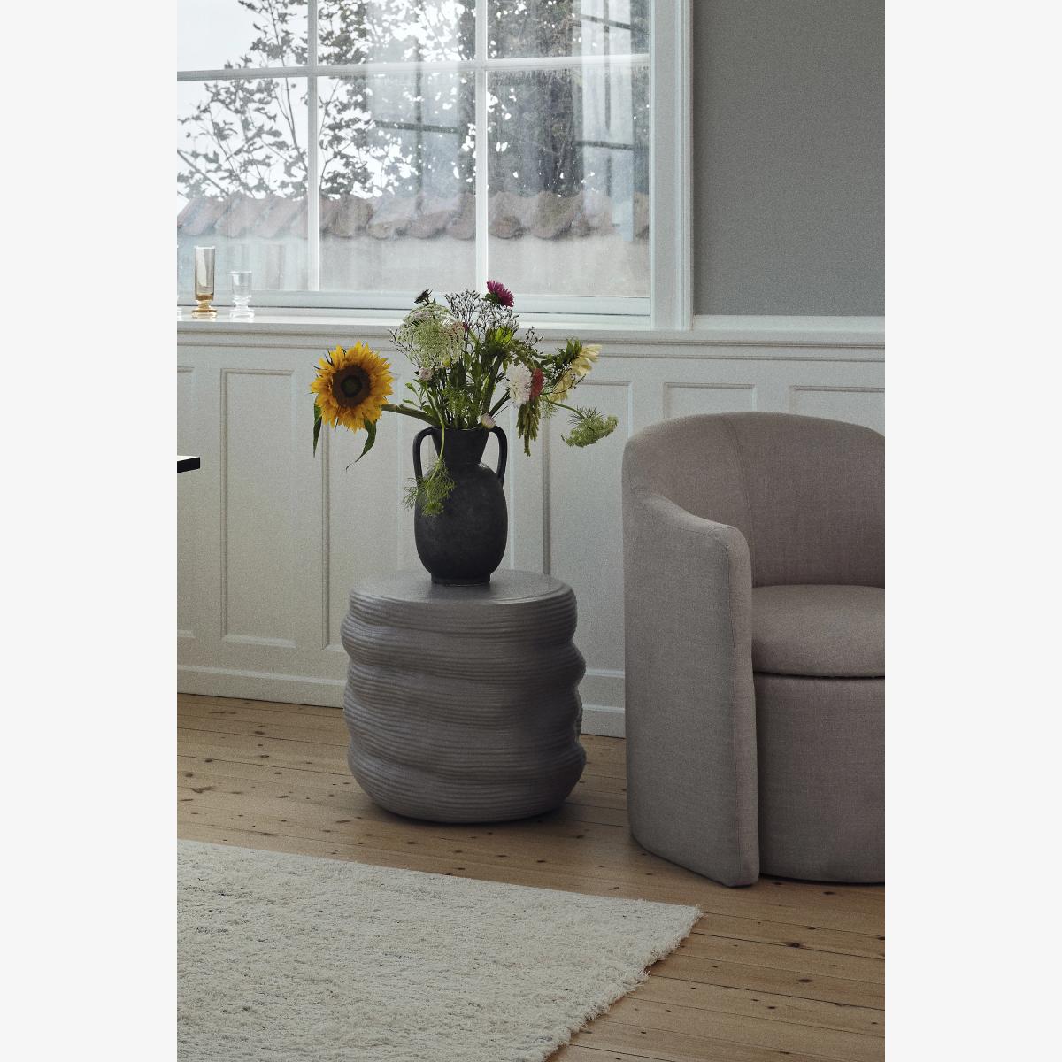 I love this little table for its versatile, understated charm. Its earthy tone and textured design make it a great addition to both modern and rustic interiors, working particularly well in ambient, pared-back schemes or boho spaces. It's perfect for placing next to a sofa or armchair, providing a handy surface for a reading lamp, a cup of coffee, or decorative accessories like vases and candles. Practical styling tips include pairing it with soft textiles or layered coasters to protect the surface, and using it to display fresh flowers or curated objects for a personalised touch. Its neutral hue means it can seamlessly blend into various colour palettes, adding a tactile visual interest without overwhelming the space.