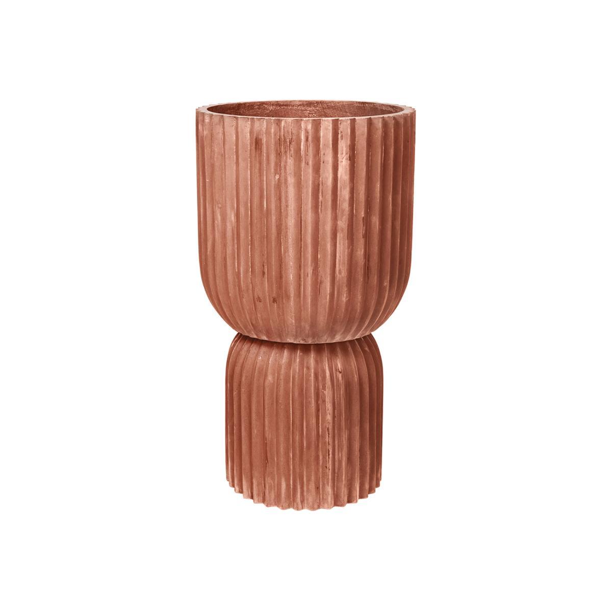 Bring some Scandinavian style into your home with this Fiber flowerpot from Broste Copenhagen. Made from fibre concrete, it features a unique structure and pleated design. Available in a charcoal grey or terracotta colour, it has a velvet like finish that will work wonderfully both indoors and outdoors. Crafted by hand, the surface of this flowerpot will naturally change colour beautifully over time.