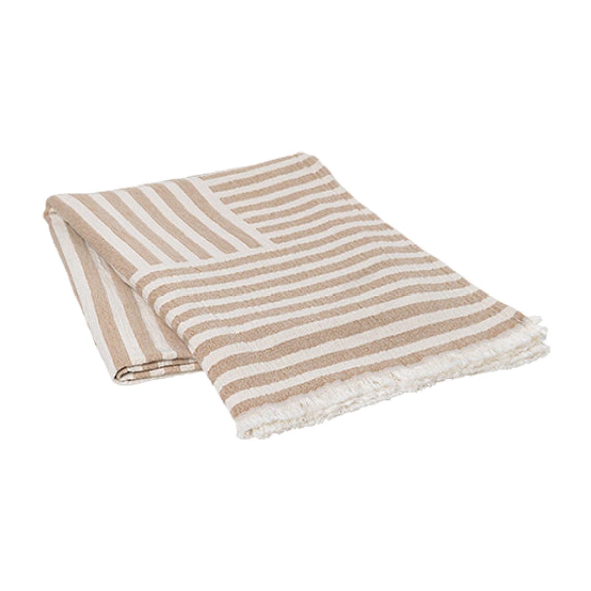 Tightly woven, soft natural fibres create an alternating, striped-block pattern in a palette of light golden tones and soft nut browns. In this Frankie blanket, Broste Copenhagen's designers have. View More. Tightly woven, soft natural fibres create an alternating, striped-block pattern in a palette of light golden tones and soft nut browns. In this Frankie blanket, Broste Copenhagen's designers have made an attractive and useful throw that is not too heavy or too light and is therefore practical all year-round, whether it's used as a final top layer for extra warmth on your bed in winter or a light throw to pull around your shoulders on those cool nights when summer fades to autumn. With its simple geometric design, it goes well with rich wooden tones and crisp Scandi-style pieces in the bedroom or the lounge.