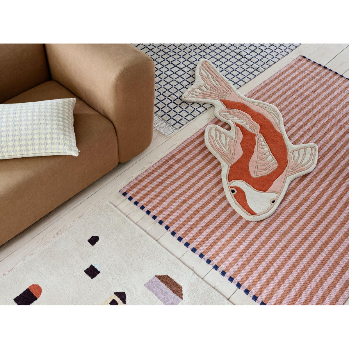 I love the koi rug for its playful yet contemporary look, making it a fantastic statement piece. Its vivid pumpkin orange tone works particularly well in neutral or pared-back interiors, adding a pop of colour that instantly lifts the space. It’s versatile enough for living rooms, bedrooms, or even kids’ rooms where a touch of personality is welcome. Practical styling tips include pairing it with muted textiles or natural woods to balance the boldness, and placing it where it can be appreciated-such as in front of a sofa or underneath a dining table-to create a focal point. Its size makes it easy to incorporate without overwhelming a room, making it a lively yet functional addition.