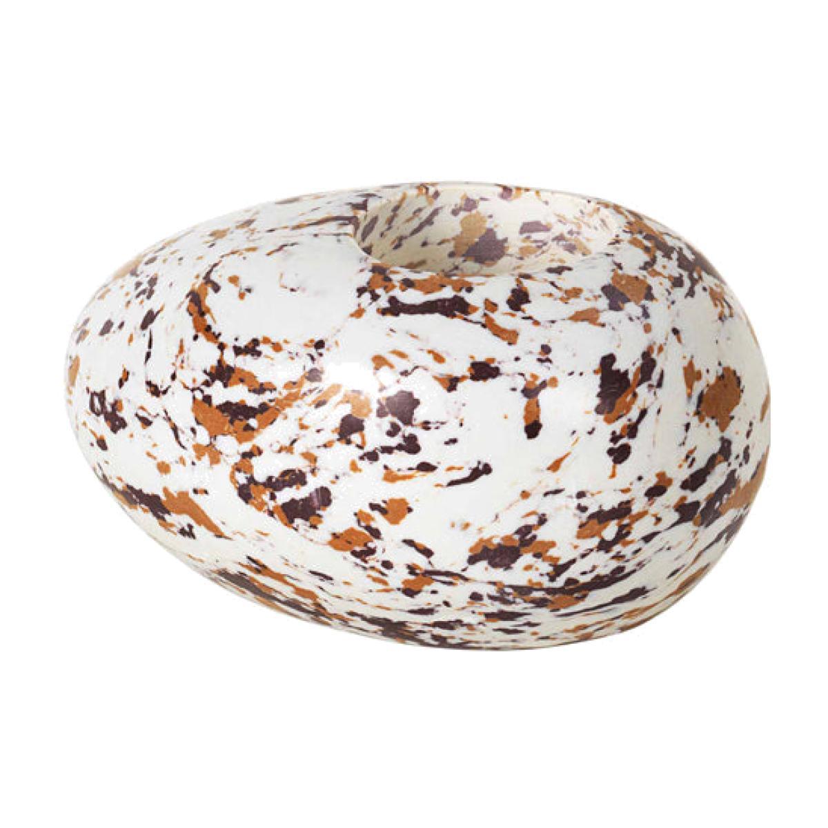At first glance the Broste Copenhagen light holder looks like something you'd find on a beach or in a cave. It resembles a patterned rock or the egg of some unknown bird. There's something very natural about the pale komposit decorated with lines and splashes of colour, as though an enthusiastic artist flicked their paintbrush at it. Curving edges and a smooth surface are pleasant to the touch, broken only by the indentation of the actual holder. It can sit in any room of your house to add character and charm, even before you light a candle. *Moot Trading Ltd is not a lender and acts only as an introducer. The credit product is provided by Klarna Bank AB (publ). Credit is only available to permanent UK residents aged 18 and over, subject to status. Terms and conditions apply. Please note that the following products are not regulated by the FCA: Pay in 30 days and Pay in 3 instalments. Read More.