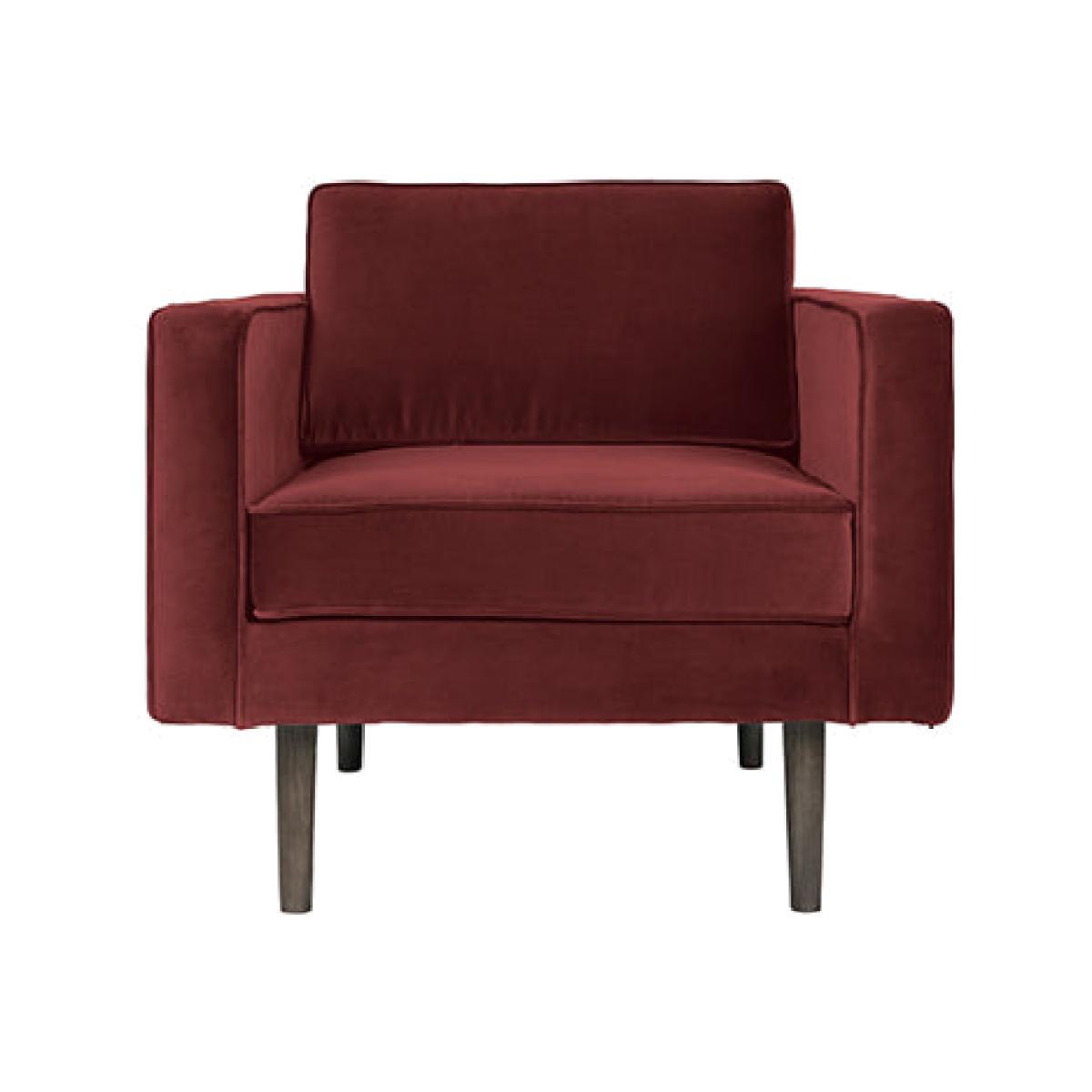 This “Wind” style armchair from. Broste. Copenhagen is upholstered in a velvety polyester fabric with a wine-hue that. Broste. Call “Wild Ginger”. It is a very warm and inviting colour that helps to add depth and intensity to the room it is in, but this is a very practical as well as stylish chair. The plywood frame makes it light enough to move around while the natural oak legs ensure it can take any weight. The super soft fabric is water repellent and ready for everyday use. The sleek geometrical lines of this chair make it a perfect accompaniment for contemporary design themes. *Moot Trading Ltd is not a lender and acts only as an introducer. The credit product is provided by Klarna Bank AB (publ). Credit is only available to permanent UK residents aged 18 and over, subject to status. Terms and conditions apply. Please note that the following products are not regulated by the FCA: Pay in 30 days and Pay in 3 instalments. Read More.
