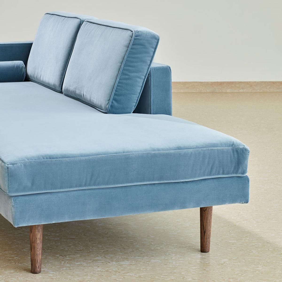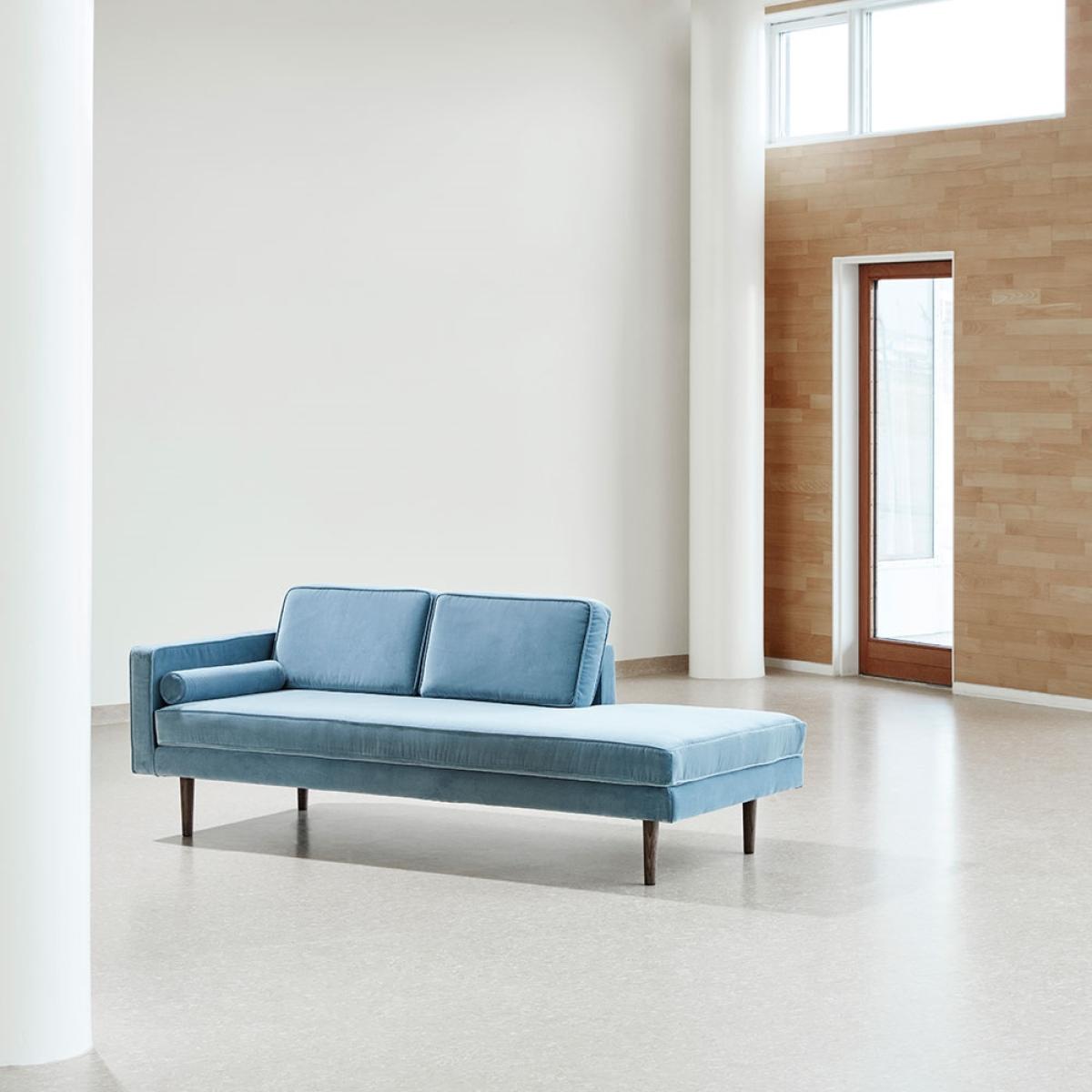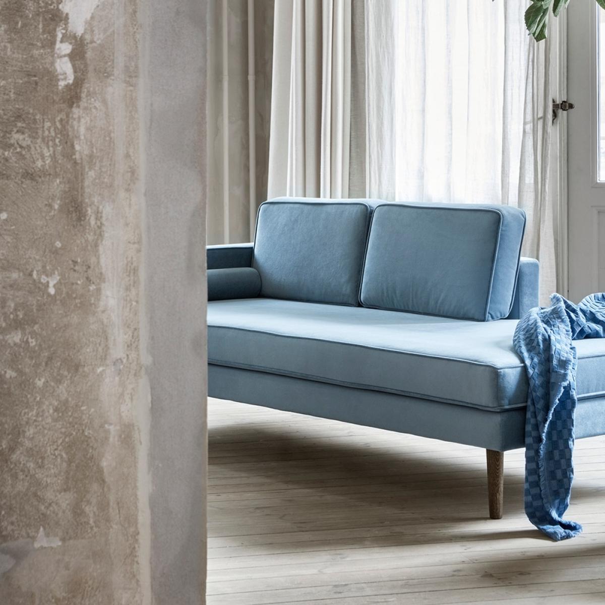 Relax in comfort and style with the Wind Chaise Longue from Broste Copenhagen. Is there anything quite as luxurious as velvet. No? We didn't think so. Upholstered in stunningly soft velvet with dark stained oak legs, the classic styling of this chaise longue has been given a modern twist. The perfect spot to curl up with a good book and cup of tea or treat yourself to a cheeky siesta on a Sunday afternoon. With a gorgeous range of colours available it will be hard to pick your favourite!.