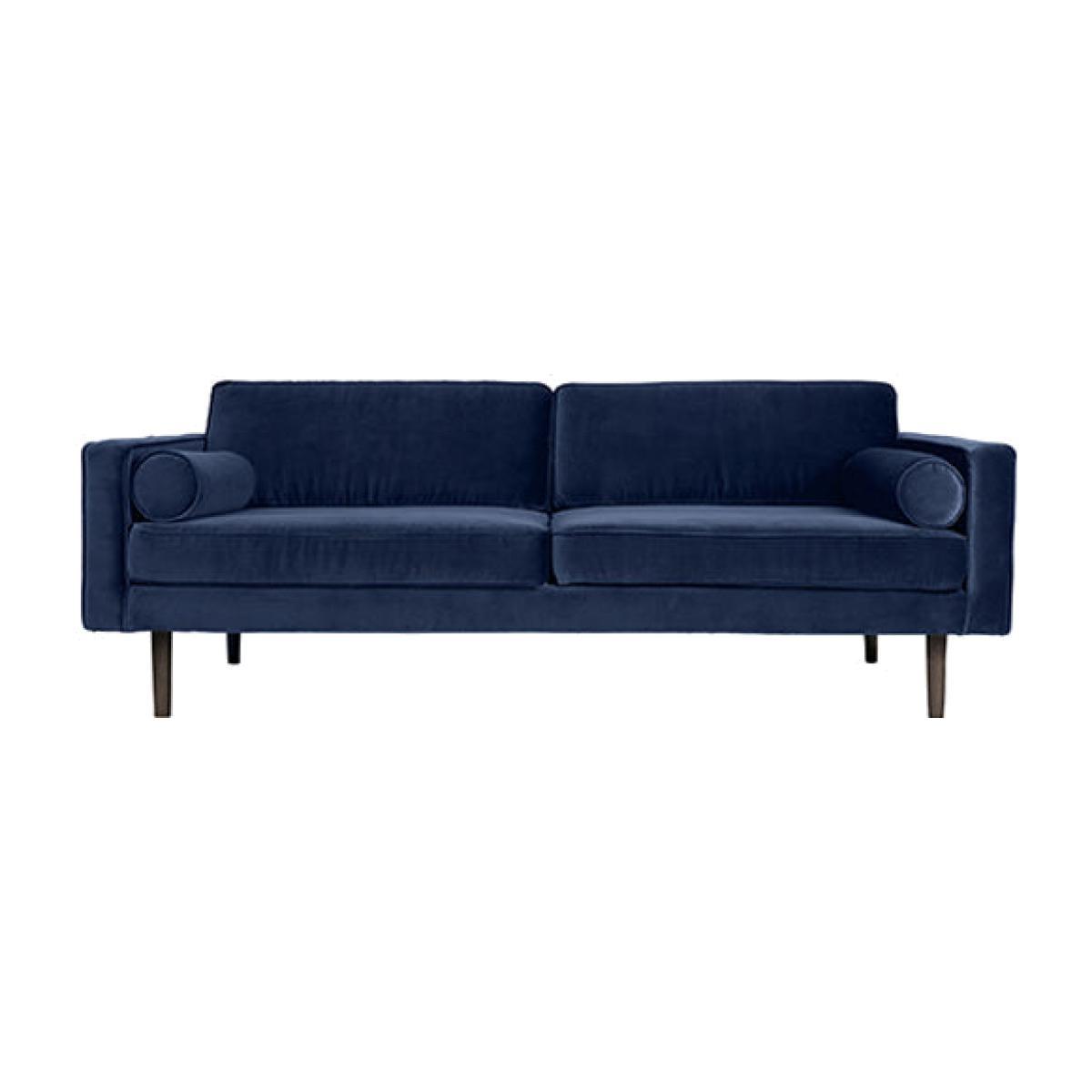 Instantly inject a strong statement of elegant sophistication into your living space with the Wind Insignia blue sofa from Broste Copenhagen. Its sleek lines will elevate and simplify your room while providing comfortable and luxurious seating for up to three people. Created in thick, sumptuous deep blue velvet and complete with rounded end bolster cushions, this sofa will work equally well in a blue- or grey-toned room, amidst a rich jewel-toned palette, or as a standout splash of colour in an otherwise neutral design. Architectural, minimalist and luxurious, this beautiful piece of furniture will lift both your room and your spirits on a daily basis. *Moot Trading Ltd is not a lender and acts only as an introducer. The credit product is provided by Klarna Bank AB (publ). Credit is only available to permanent UK residents aged 18 and over, subject to status. Terms and conditions apply. Please note that the following products are not regulated by the FCA: Pay in 30 days and Pay in 3 instalments. Read More.