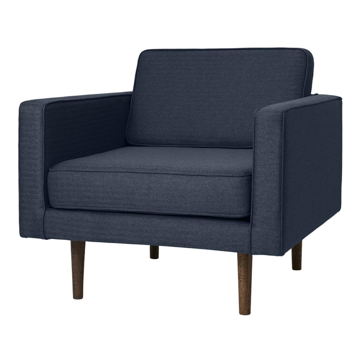 This welcoming and comfortable Broste Copenhagen Wind armchair is perfect for curling up in and reading a book, watching television, or enjoying cosy evening chats with family or friends. Blending modern Scandinavian design aesthetics with warm and traditional navy tweed upholstery, this armchair will look great in your living room or snug. With clean, simple lines and a luxurious feel, this armchair has solid wood legs and rectangular cushions; what’s more, the hardwearing tweed fabric has a 100,000 score on the Martindale abrasion test. The dimensions are 84cm wide, 88cm deep and 74cm high, with a seat height of 44cm and depth of 58cm. Dimensions: W:84 X L: 88 X H: 74cm Materials: 100% Pes Assembly Required: No Care Instructions: Spot clean only. No harsh abrasives or bleach Additional Information: 100.000 Martindale