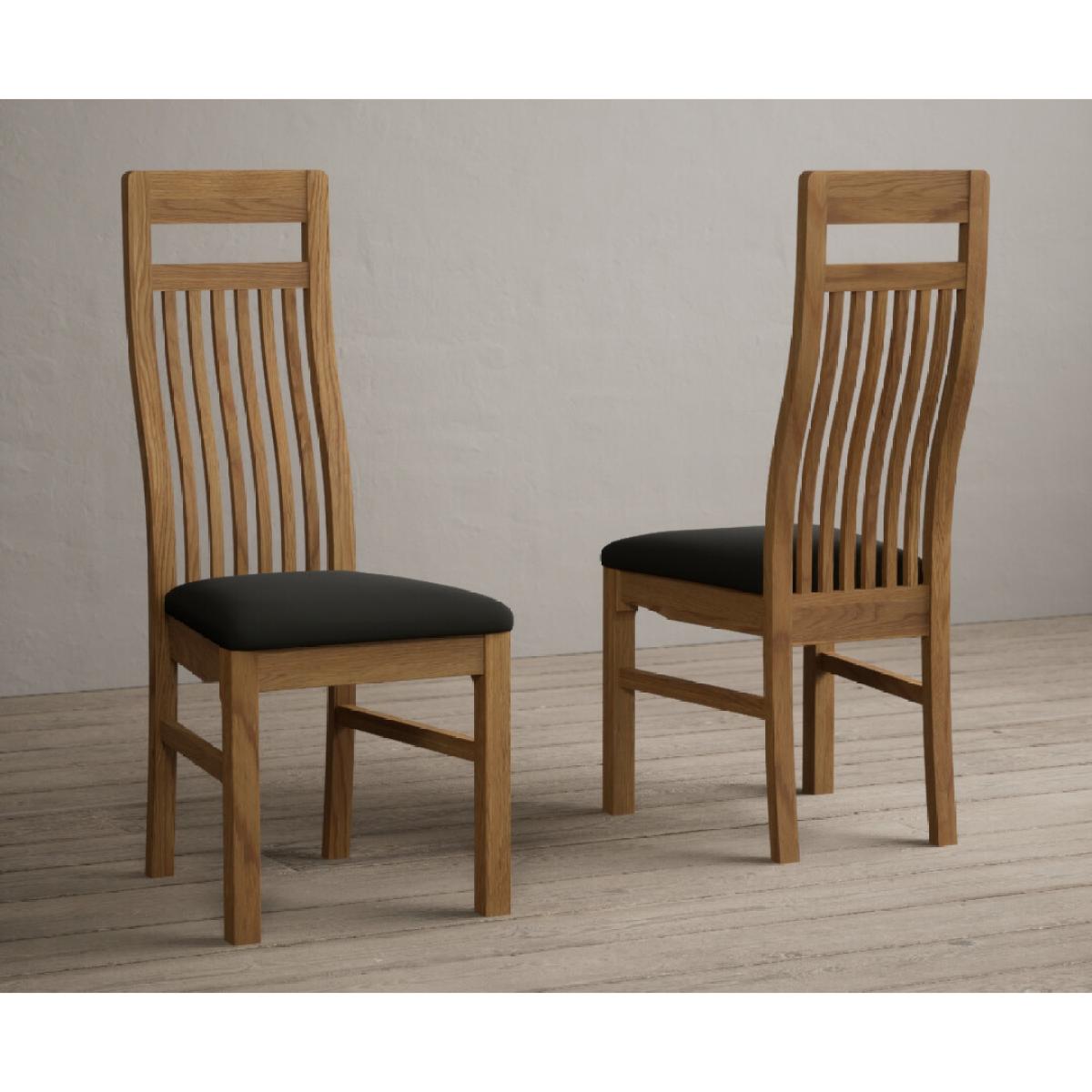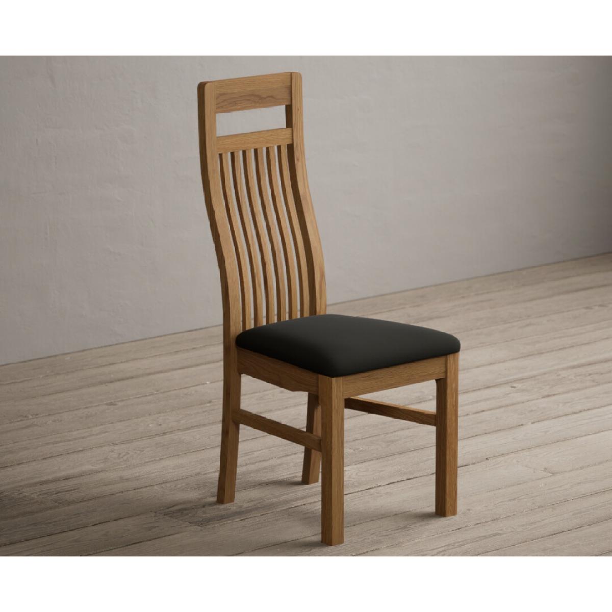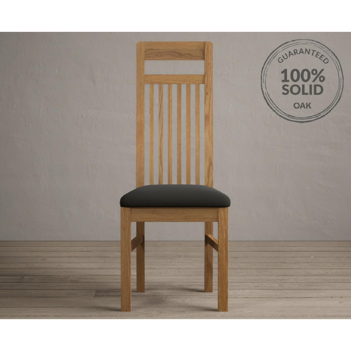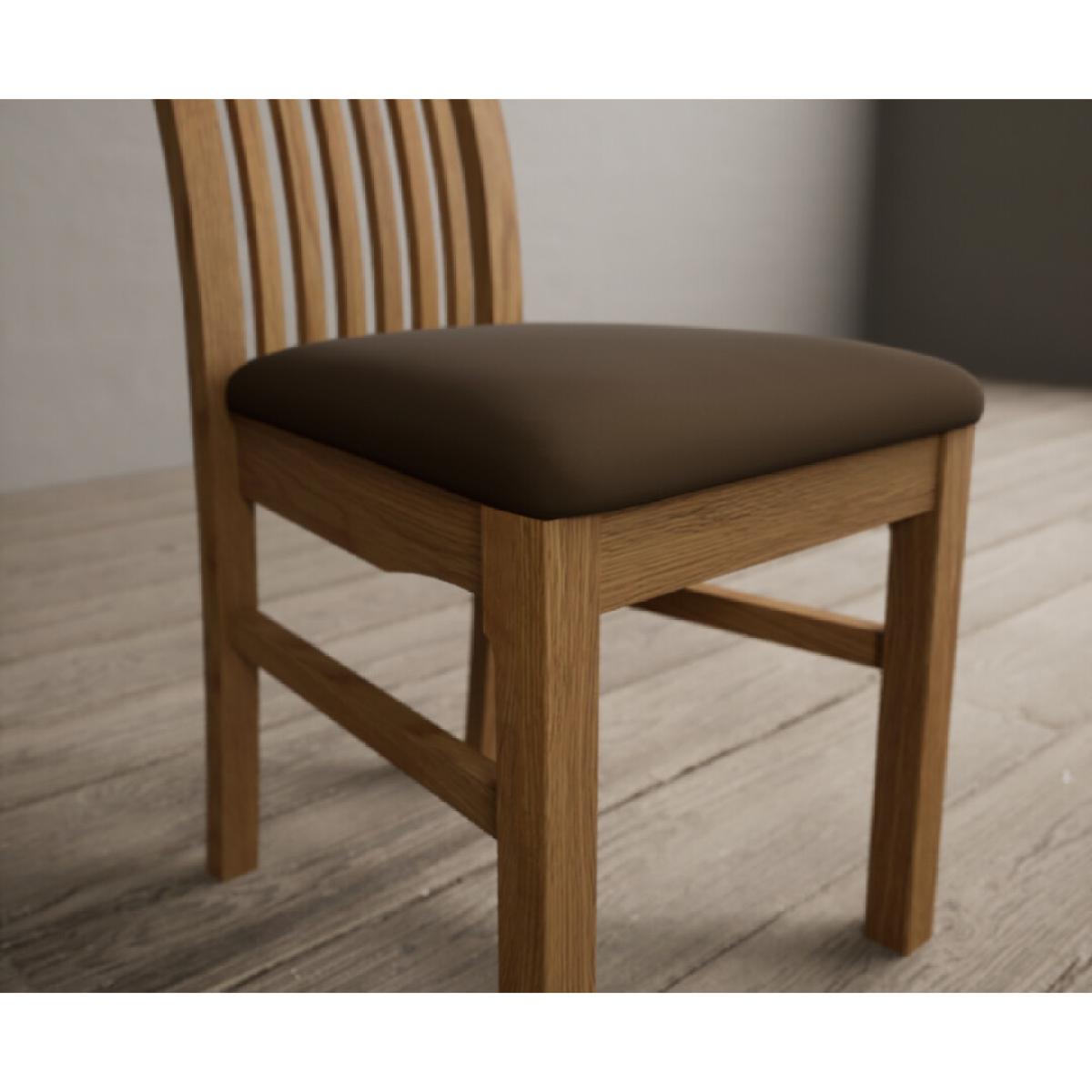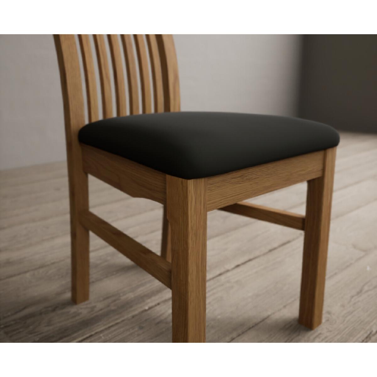 Monroe Solid Oak Dining Chairs with Faux Leather Seat Pad are 100% solid oak dining chairs with slatted backrests and faux leather seats.