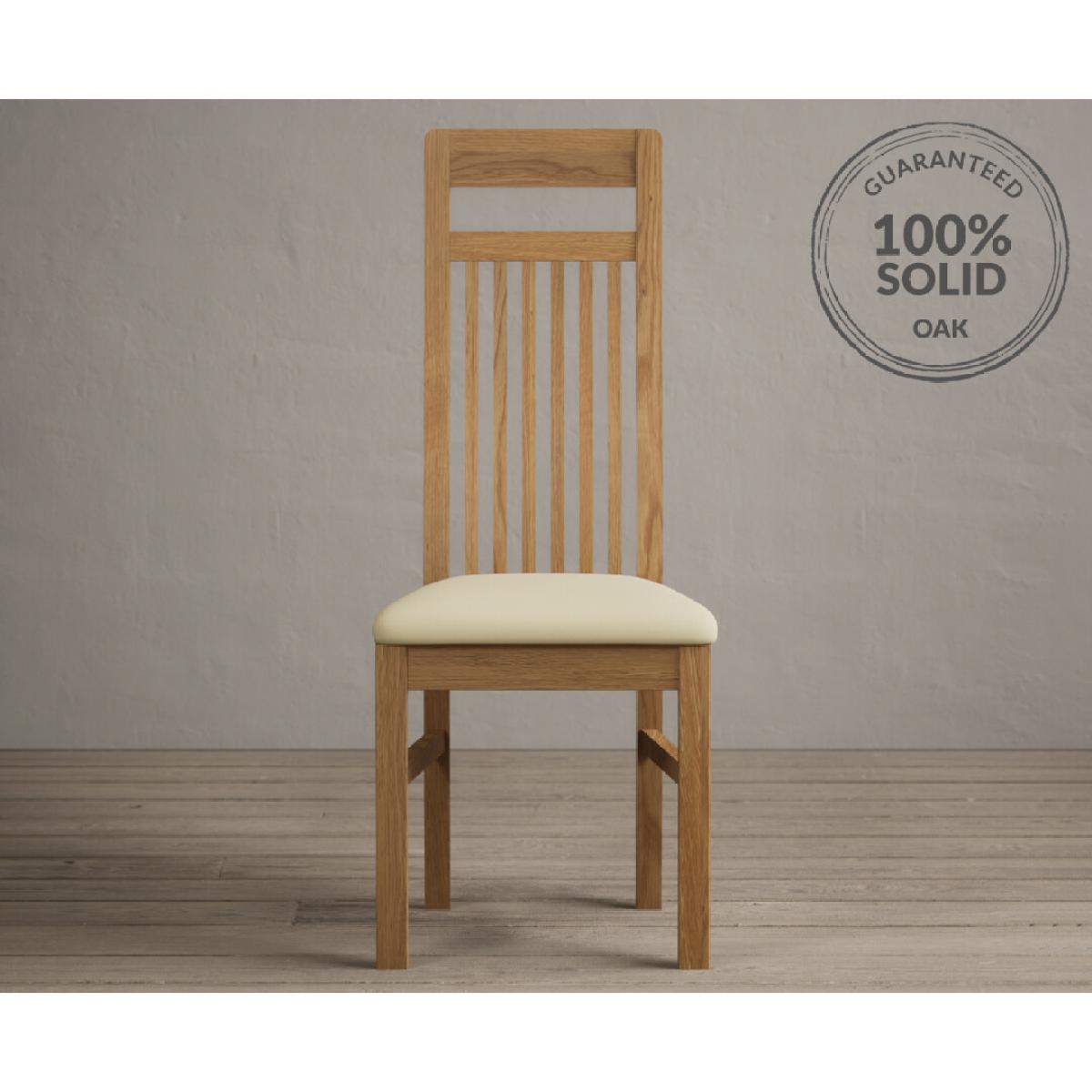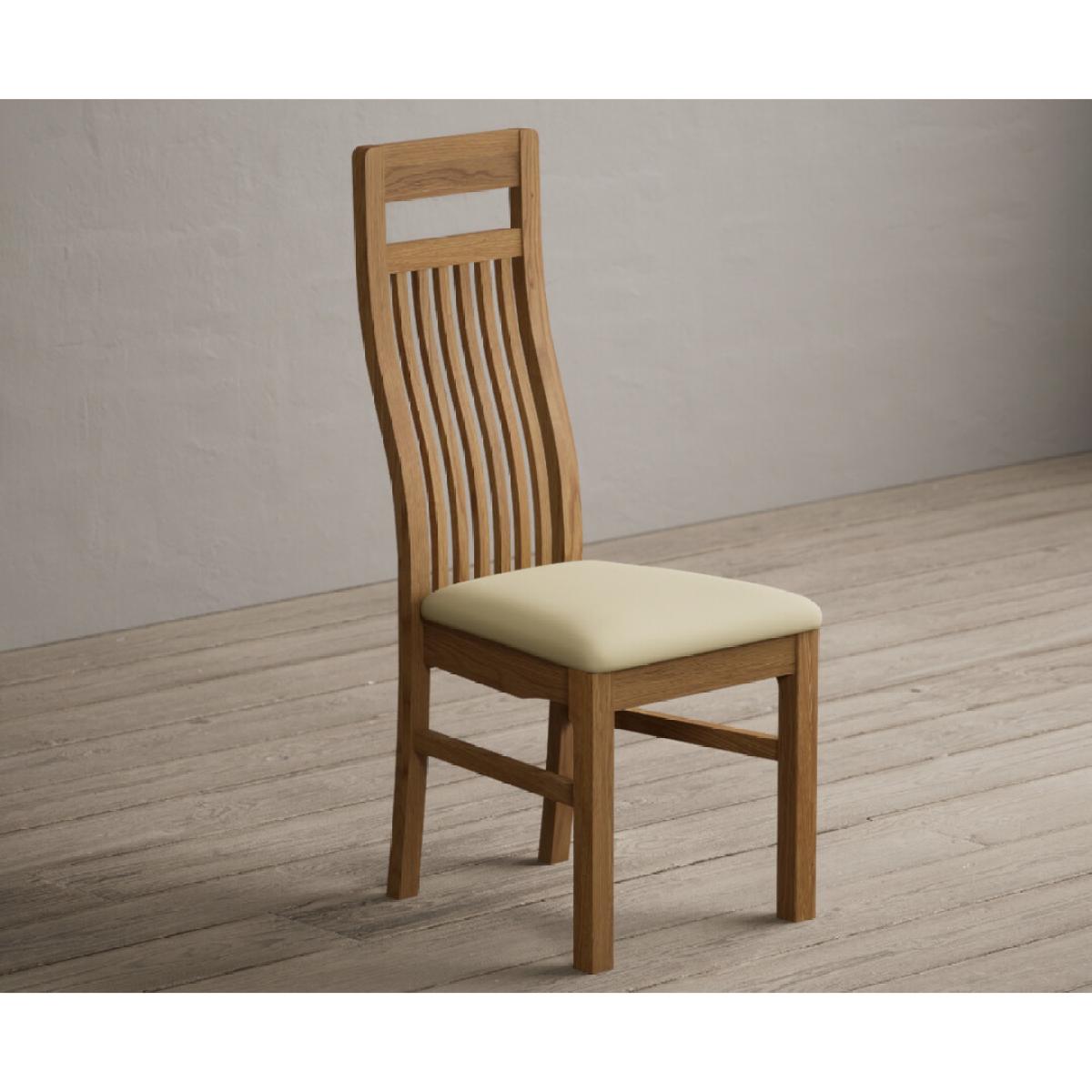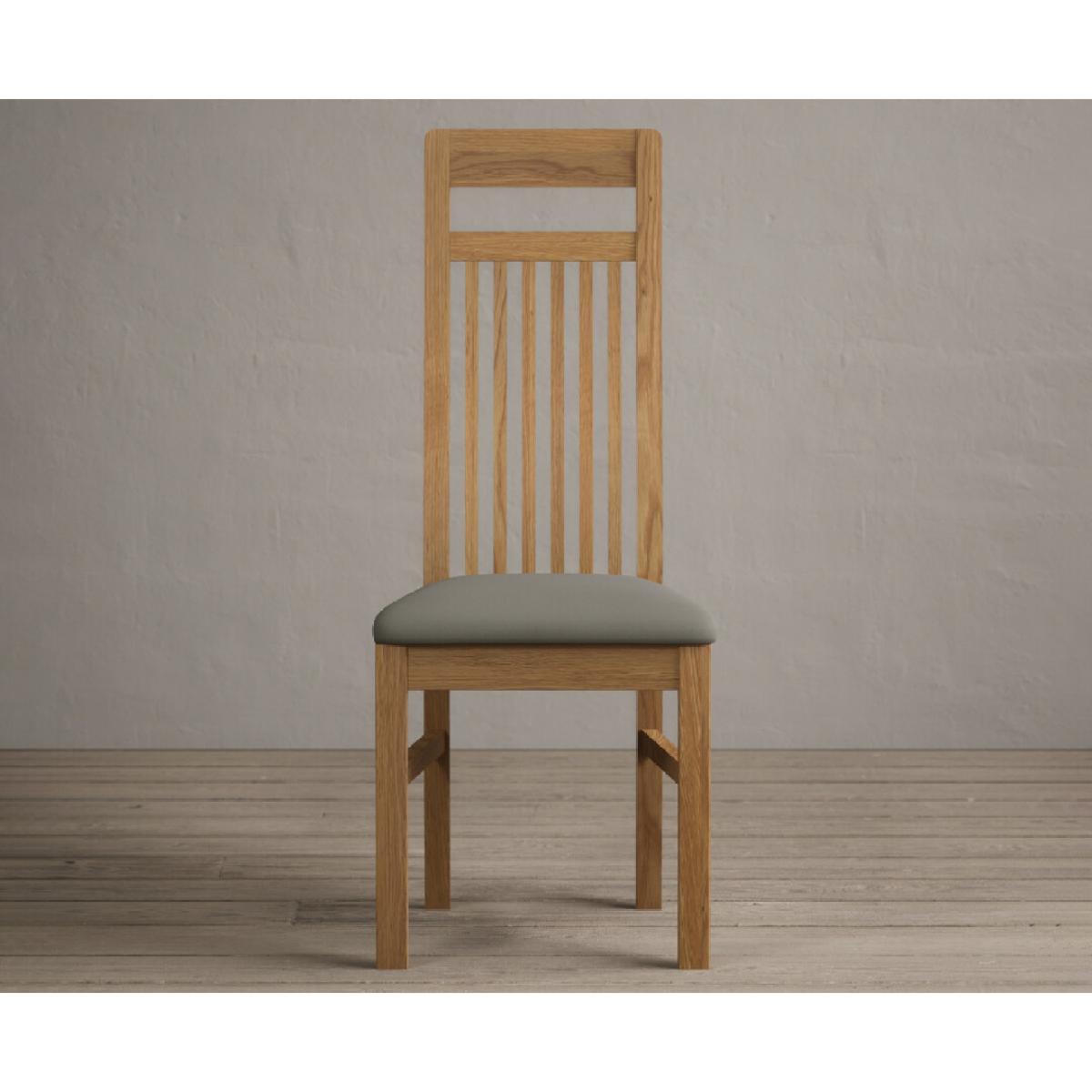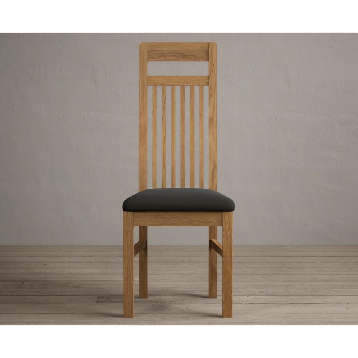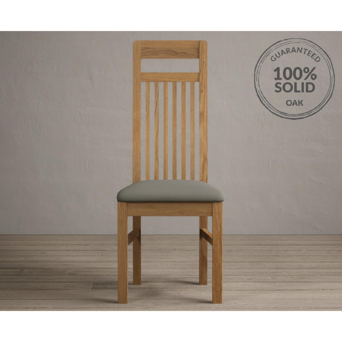 Monroe Solid Oak Dining Chairs with Faux Leather Seat Pad are 100% solid oak dining chairs with slatted backrests and faux leather seats.