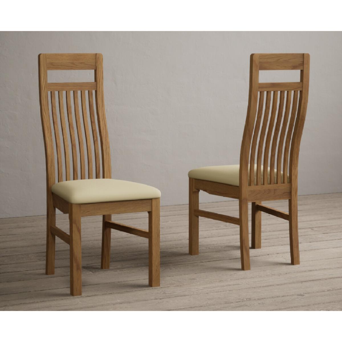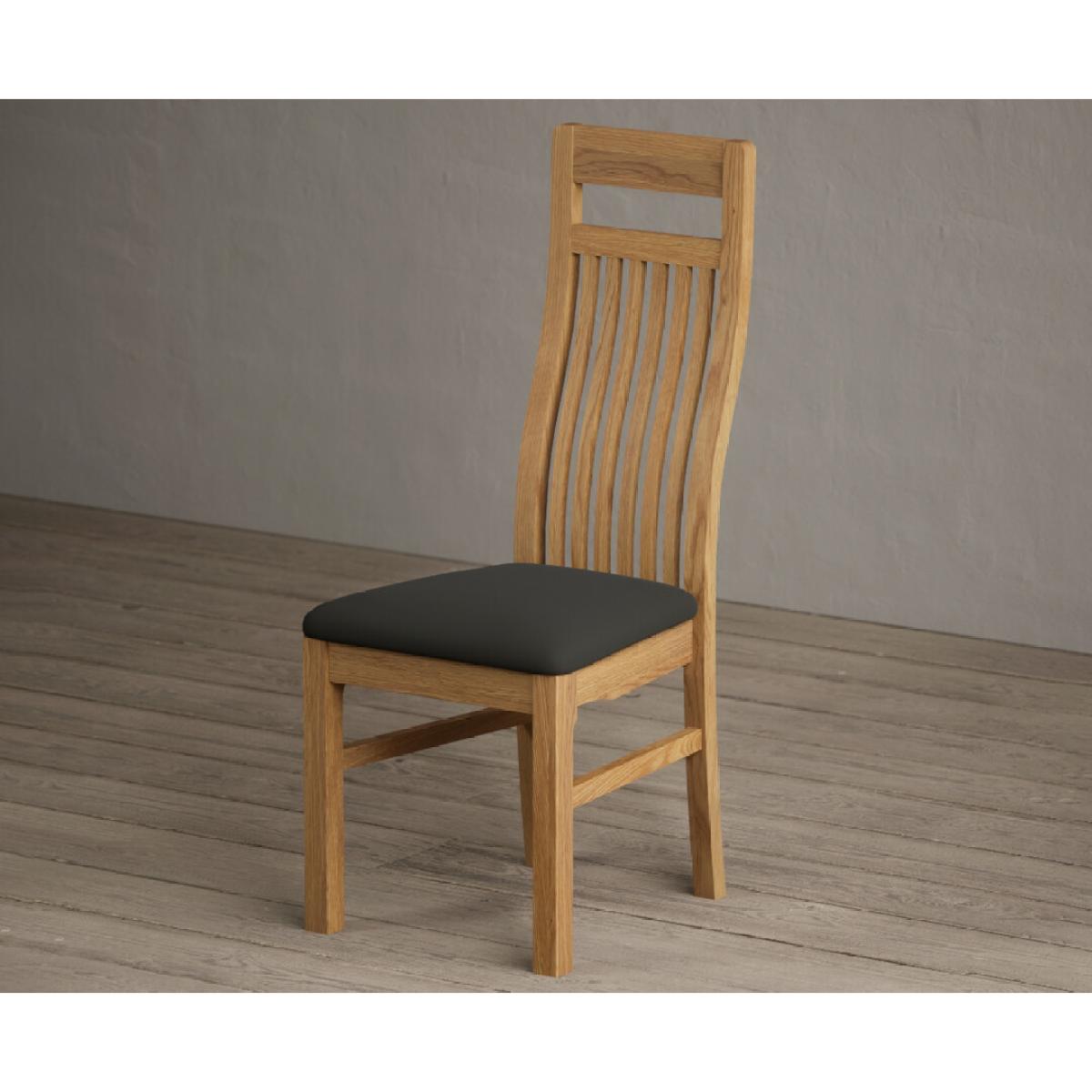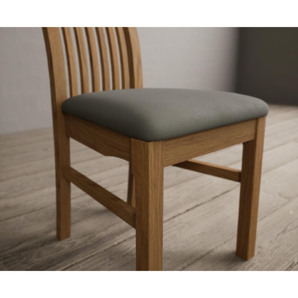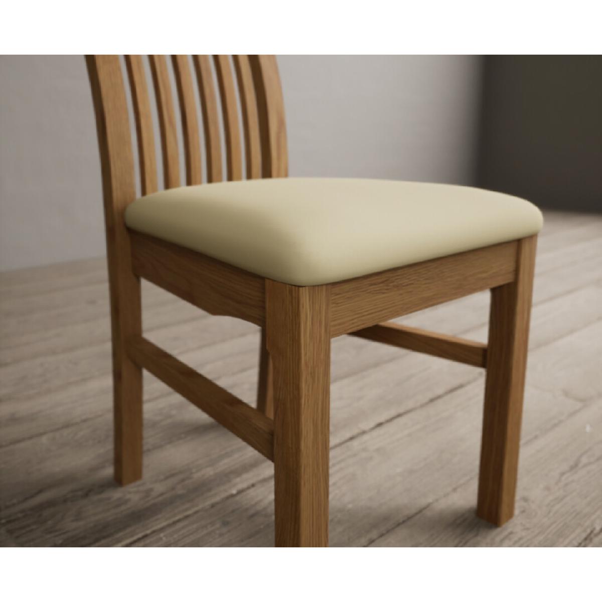 Monroe Solid Oak Dining Chairs with Faux Leather Seat Pad are 100% solid oak dining chairs with slatted backrests and faux leather seats.