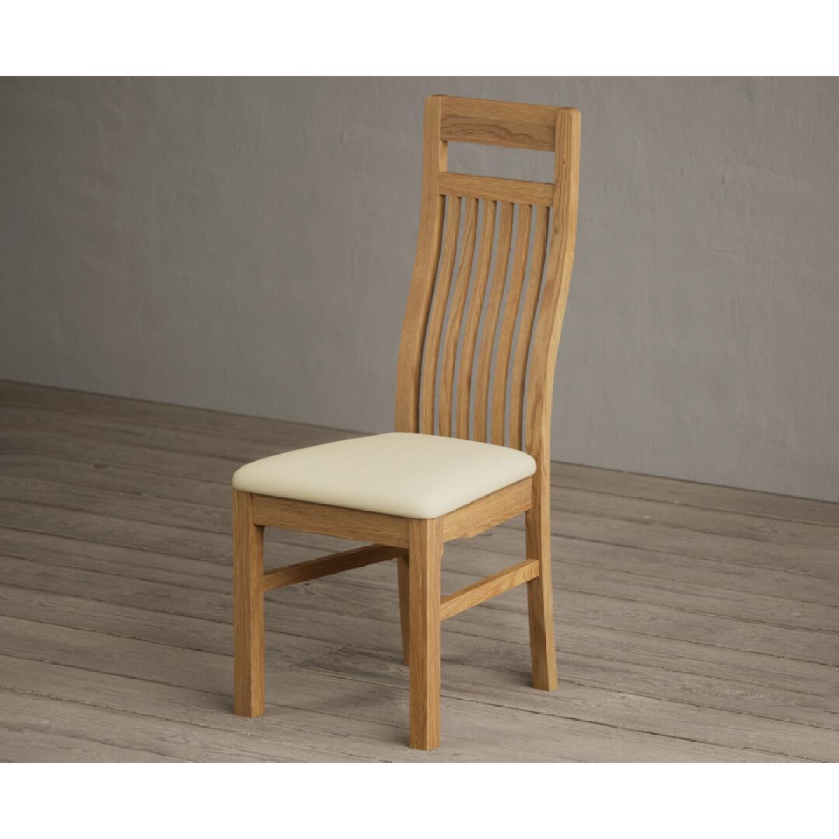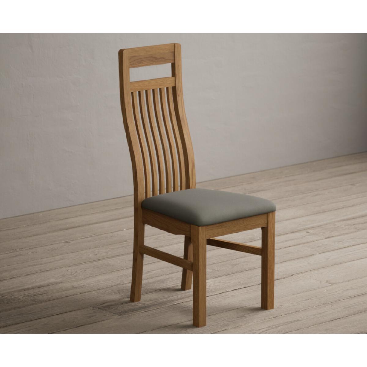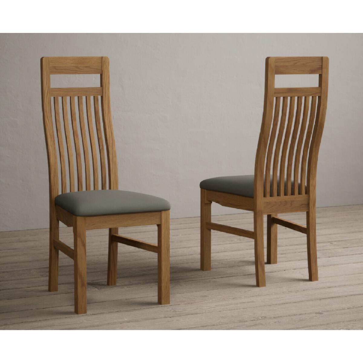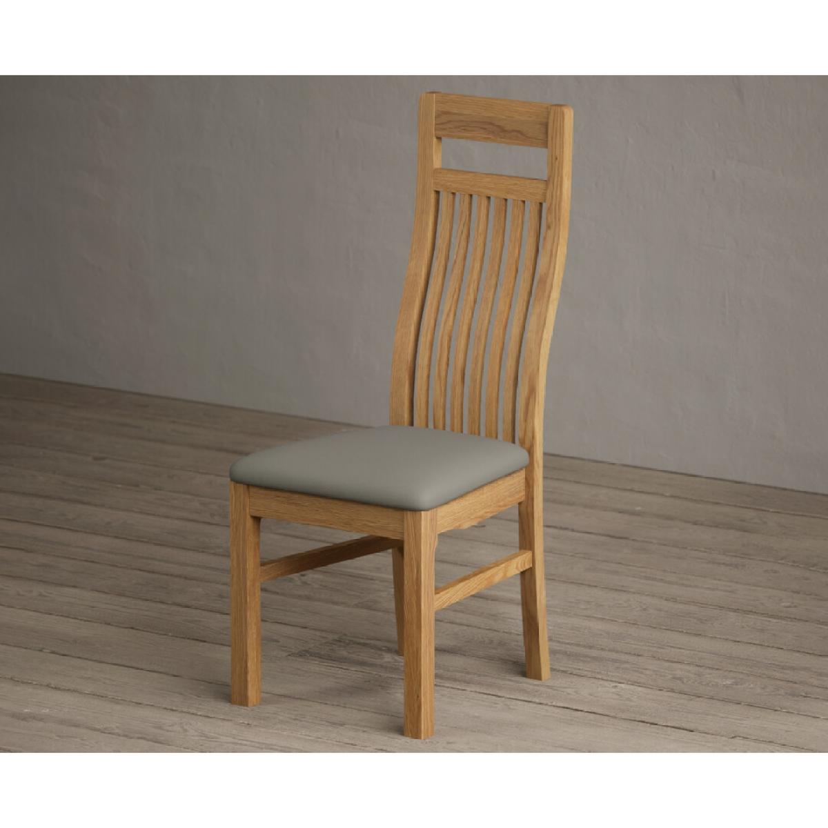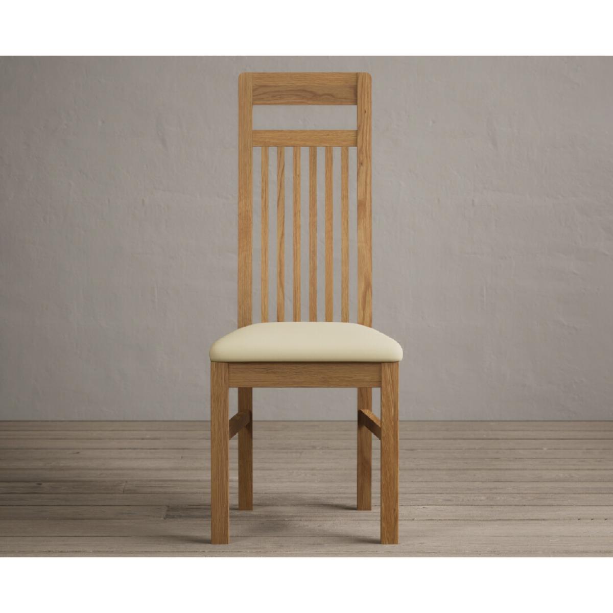 Monroe Solid Oak Dining Chairs with Faux Leather Seat Pad are 100% solid oak dining chairs with slatted backrests and faux leather seats.