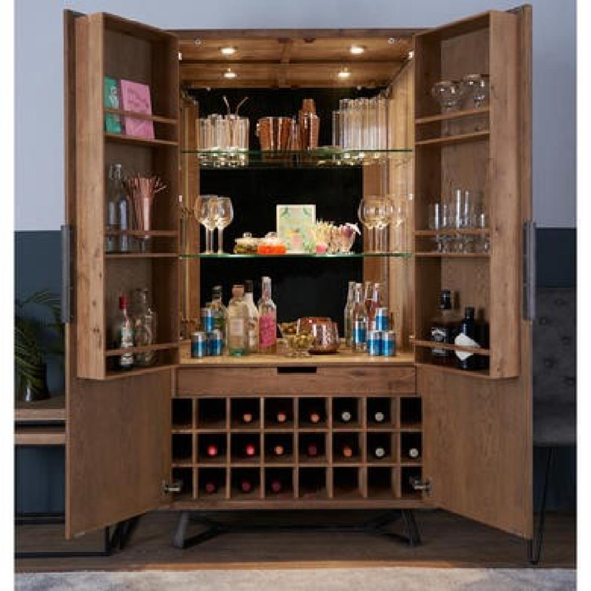 I really like this drinks cabinet for its warm, natural tone and subtle chevron pattern, which adds visual interest without being overwhelming. It works well in both contemporary and rustic interiors, providing a stylish storage solution that keeps your bottles and glassware organised. For styling tips, consider pairing it with brass or matte black accessories to enhance its modern edge, or soften the look with some greenery or vintage barware on top. It’s a practical piece that can serve as a statement furniture in an open-plan living or dining space, while also blending seamlessly into more traditional settings if styled thoughtfully.