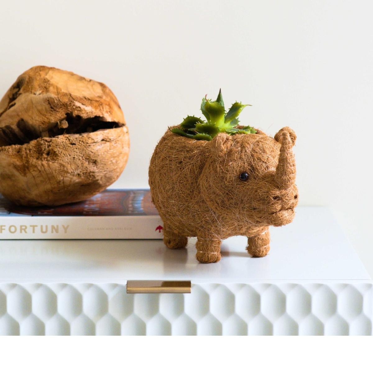 Brown Coco Coir Animal Planter Rhino Likhâ
