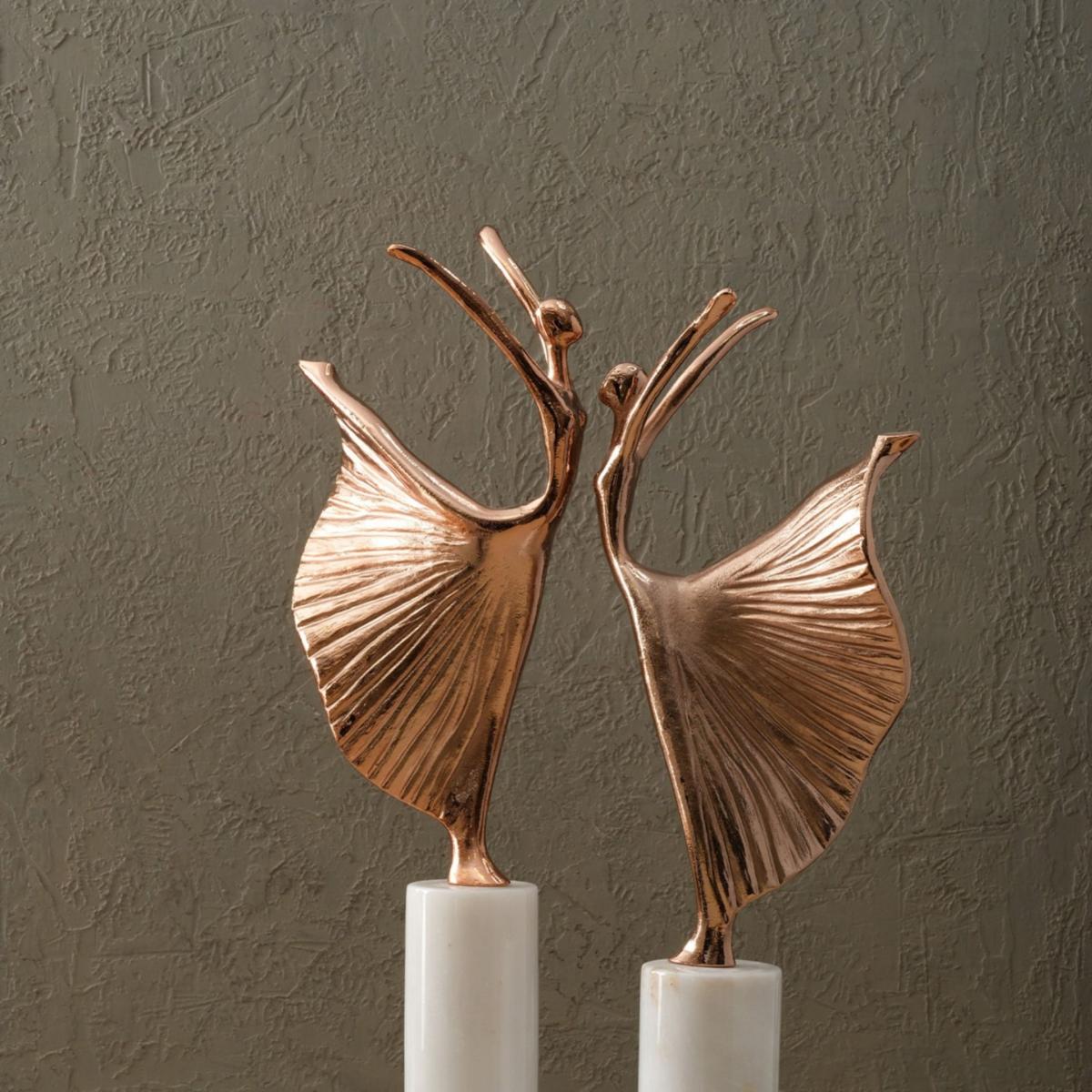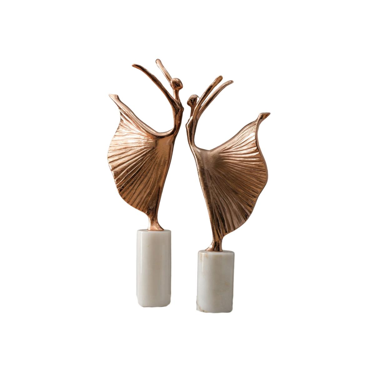 Elevate your home or office décor with the Elegant Bronze Ballerina Duo Sculpture, a mesmerizing piece that captures the beauty and fluidity of dance. This artistic sculpture showcases two intertwined ballerinas poised in mid-movement, their gracefully arched forms and delicately textured skirts exuding a sense of motion and harmony. The flowing lines and intricate details of their dance create a stunning visual experience, embodying both strength and elegance. Mounted on a pair of polished black marble bases, this sculpture combines warm bronze hues with the sleek sophistication of marble, making it a timeless focal point that enhances modern, contemporary, or classic interiors alike.