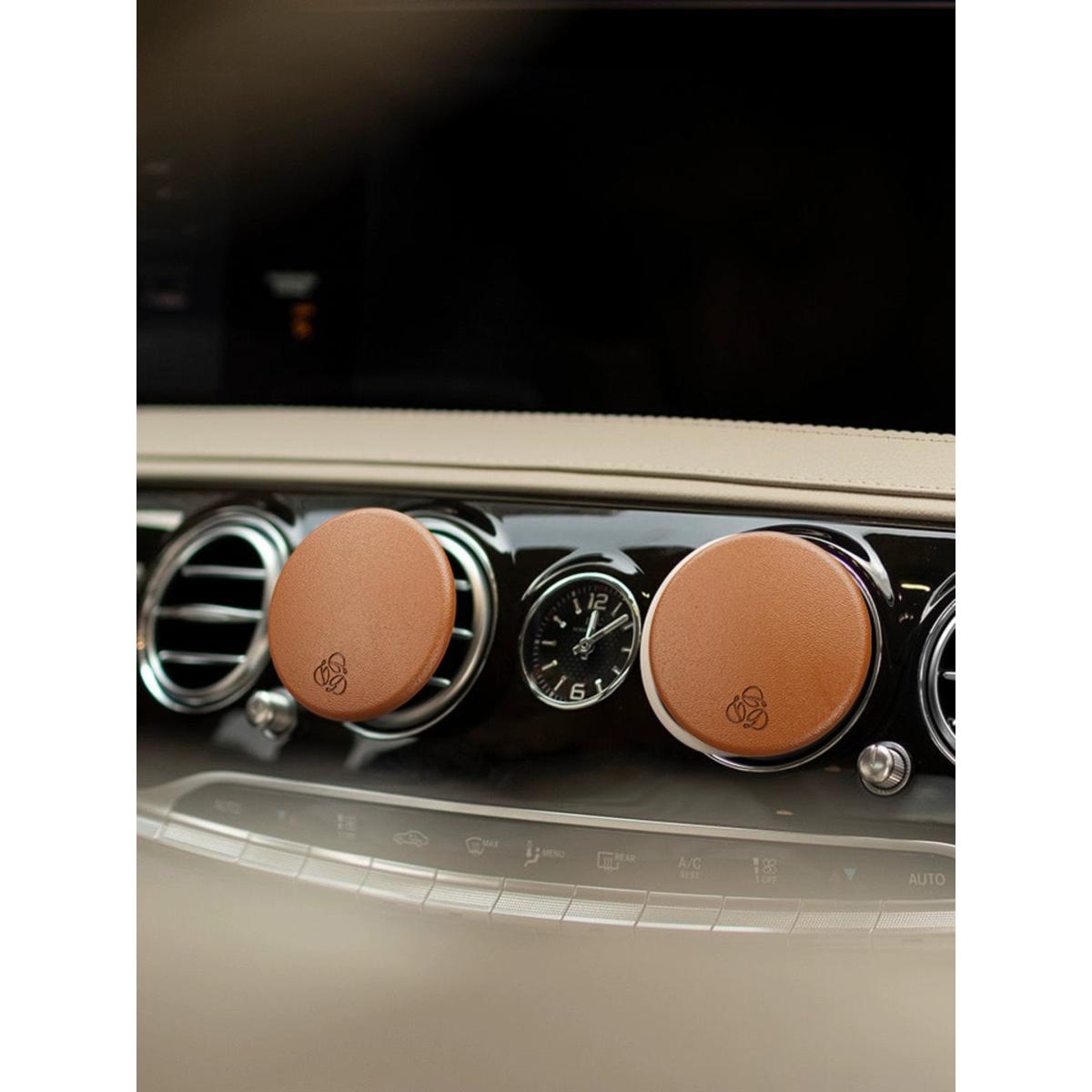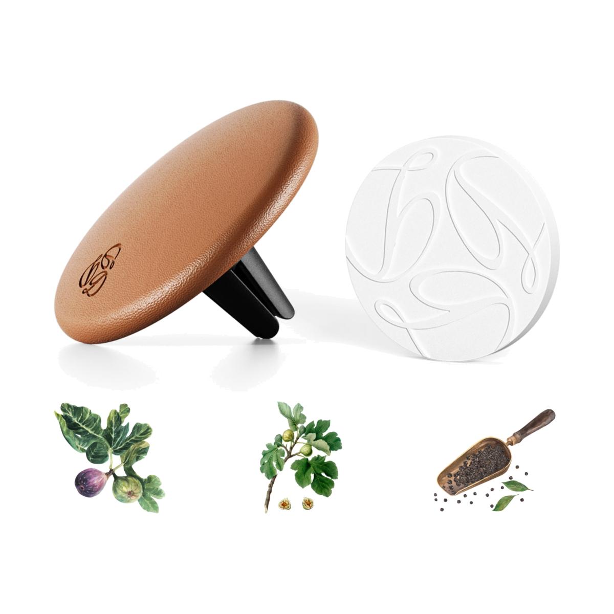 This set includes one lambskin leather case and one Fig scented insert. Enhance your driving experience with a sleek and sophisticated car diffuser designed for both style and function. The diffuser fits easily into most car air vents with its magnetic attachment, and the luxurious lambskin case adds an elegant touch, making it the perfect gift for car lovers. Infused with organic, plant-based fragrances, the Fig scented insert offers up to 2 months of long-lasting aroma. The adjustable switch allows you to control the intensity of the scent, providing a personalized experience. Refillable inserts add sustainability to the diffuser's elegance.