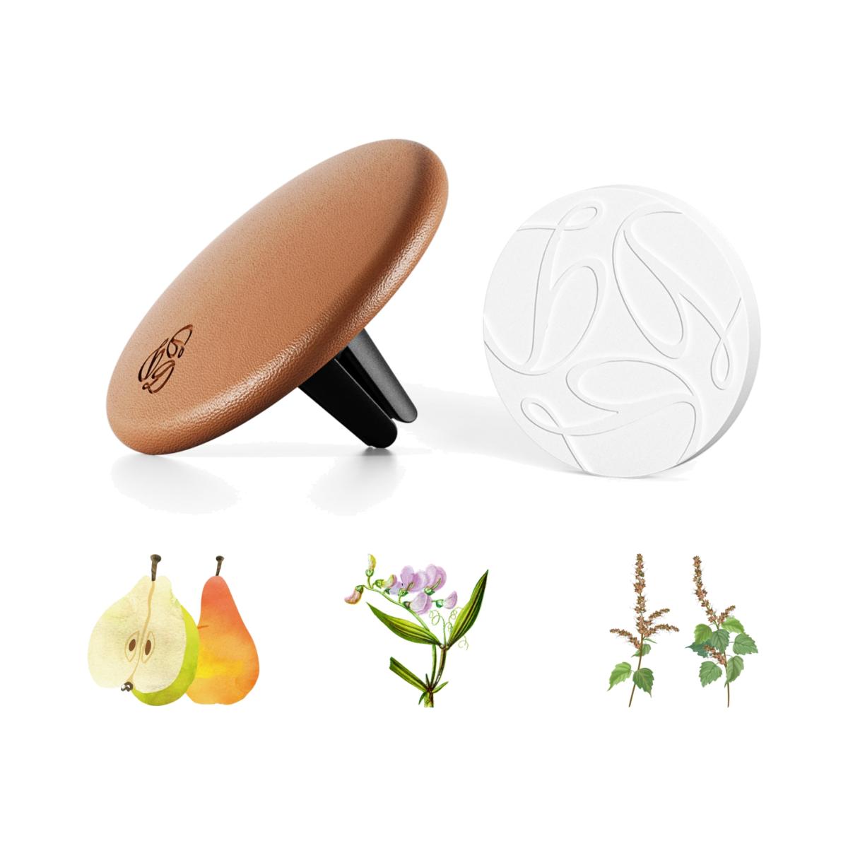 This set includes one lambskin leather case and one scented insert, designed to enhance your driving experience with both style and function. The sleek, premium car air freshener features a round shape and magnetic attachment, allowing it to fit seamlessly into most car air vents. Encased in a luxurious lambskin case, it adds an elegant touch to any vehicle’s interior, making it the perfect gift for car lovers who value both beauty and practicality. Infused with organic, plant-based fragrances, this car diffuser delivers a long-lasting scent that lingers for up to 2 months. Its adjustable switch allows you to control the intensity of the aroma, offering a personalized and refreshing driving experience.