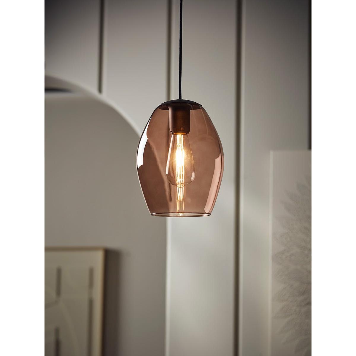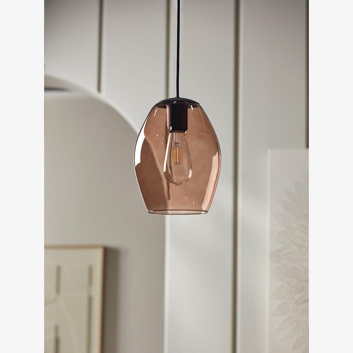 I love the brown glass oval pendant for its warm, inviting glow and its versatile aesthetic. It works particularly well in contemporary and eclectic interiors, adding a touch of understated elegance without overpowering the space. Practical styling tips include pairing it with neutral colour palettes to highlight its rich tones, and hanging it at different heights in open-plan areas for a layered lighting effect. In kitchens and dining rooms, it offers focused illumination while contributing to a cosy atmosphere, and in bedrooms, it can serve as a stylish statement piece above bedside tables or seating areas. Its sleek silhouette makes it an adaptable choice that complements both minimalist and more decorative interiors.