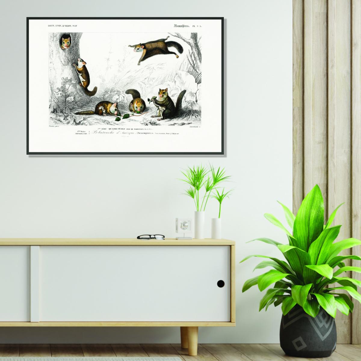 This print of the Glaucomys Sabrinus, or the American flying squirrel, offers a charming and vintage-inspired touch ideal for eclectic or nature-themed interiors. I love how it brings a nostalgic, detailed illustration to life, making it a versatile piece for both classic and contemporary spaces. It works particularly well in a gallery wall or as a standalone statement in a living room or study. For styling, consider pairing it with natural textures like wooden frames, earthy colour palettes, or botanical accessories to enhance its woodland vibe. Keep the surrounding decor minimal to allow the artwork to stand out, and it can add a subtle sense of curiosity and history to your home.
