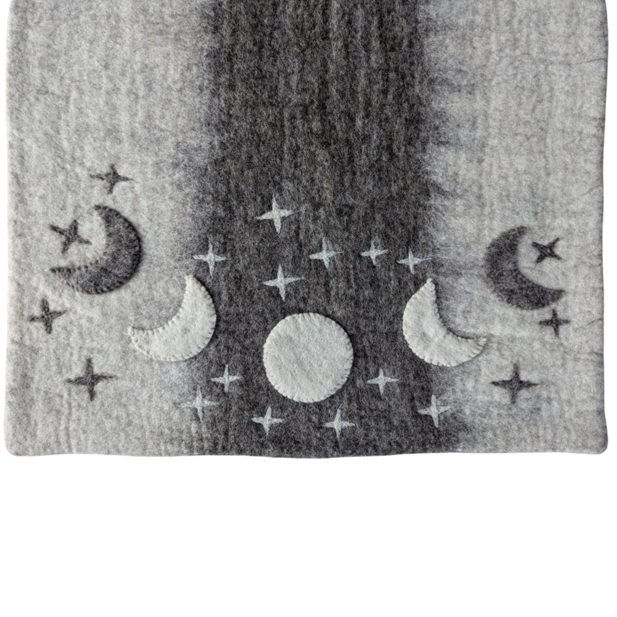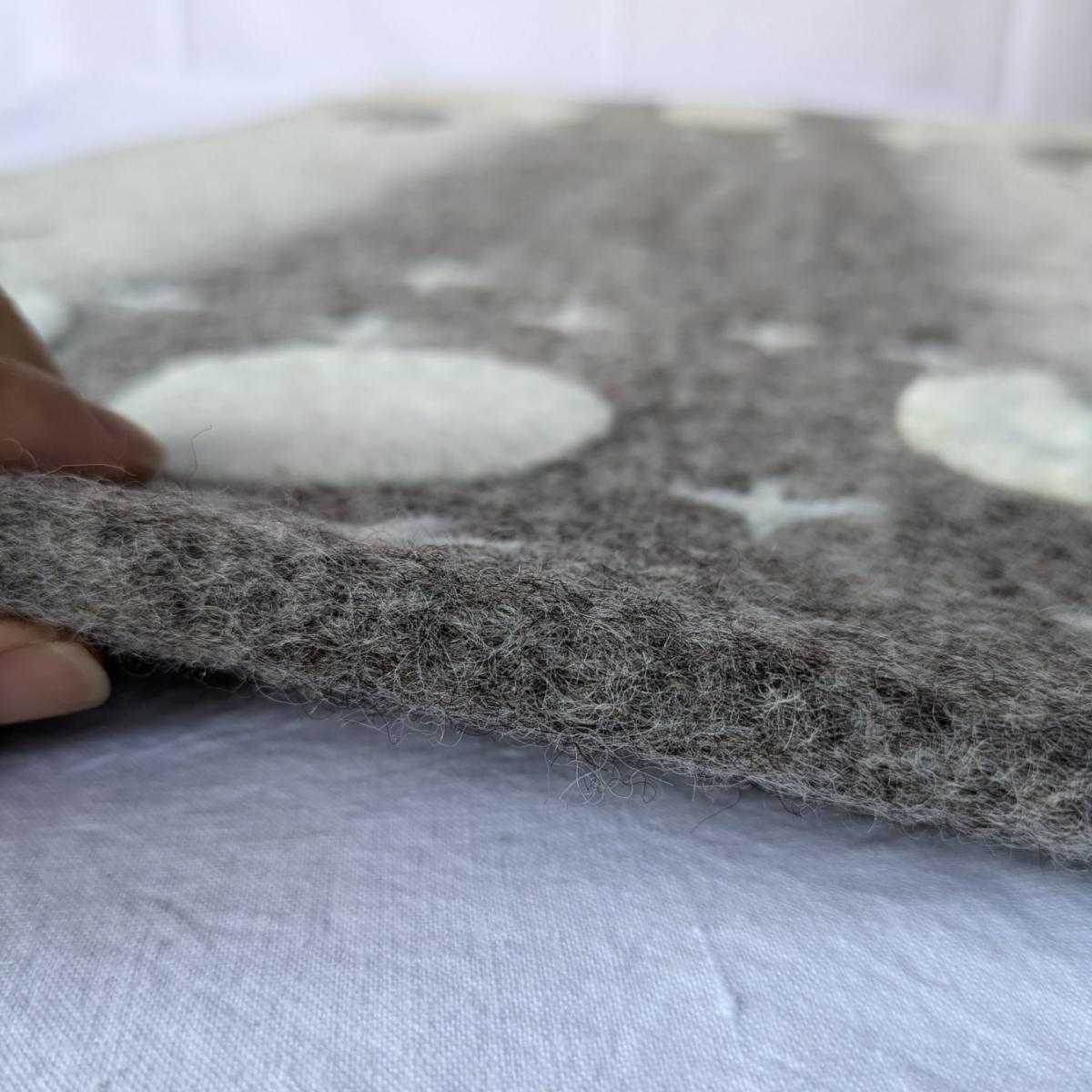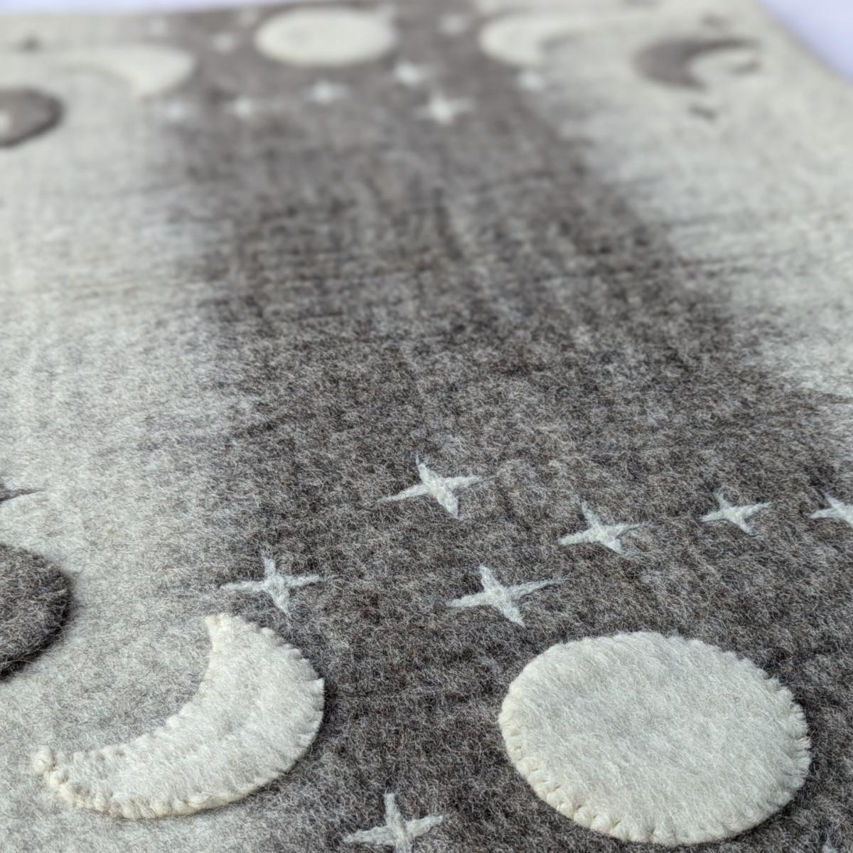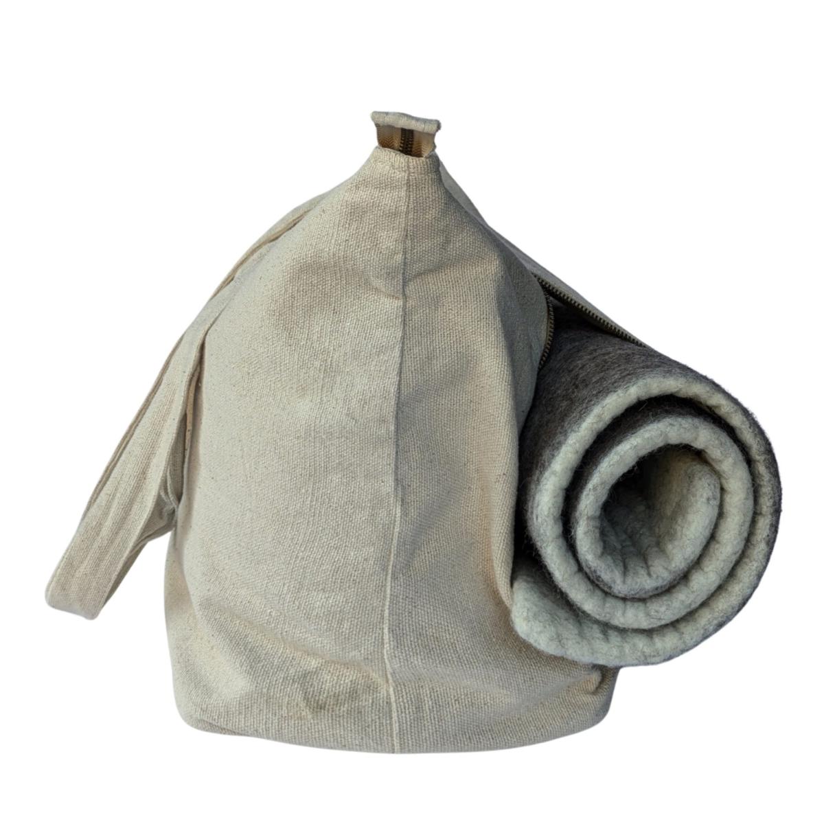 Meticulously handcrafted from 100% virgin wool, our mats are known for their unparalleled softness and hypoallergenic properties. This premium wool naturally regulates temperature, offering warmth in winter and a cool surface in summer, ensuring year-round comfort. Each mat features the phases of the moon, hand-stitched by our skilled artisans, adding a unique and celestial design. The mats retain the natural color of virgin wool, making them chemical-free and ideal for sensitive skin. They bring a stylish, elegant touch to your home decor, enhancing any room's joyful atmosphere. Proudly made in Nepal, each mat promotes sustainable practices and fair working conditions. Each purchase includes an adjustable travel strap and a handmade cotton canvas travel bag.