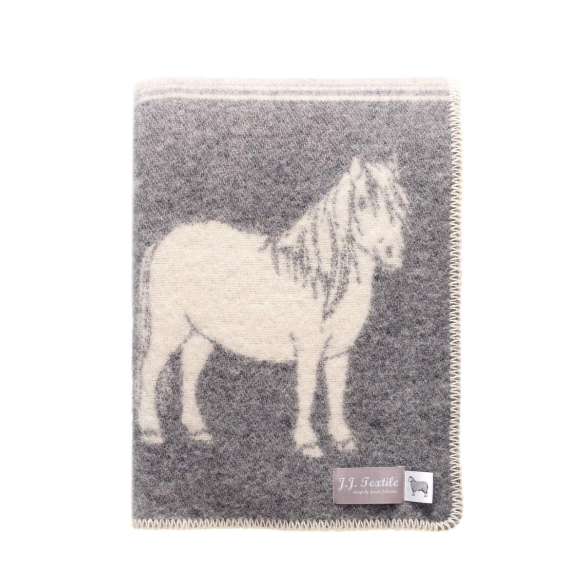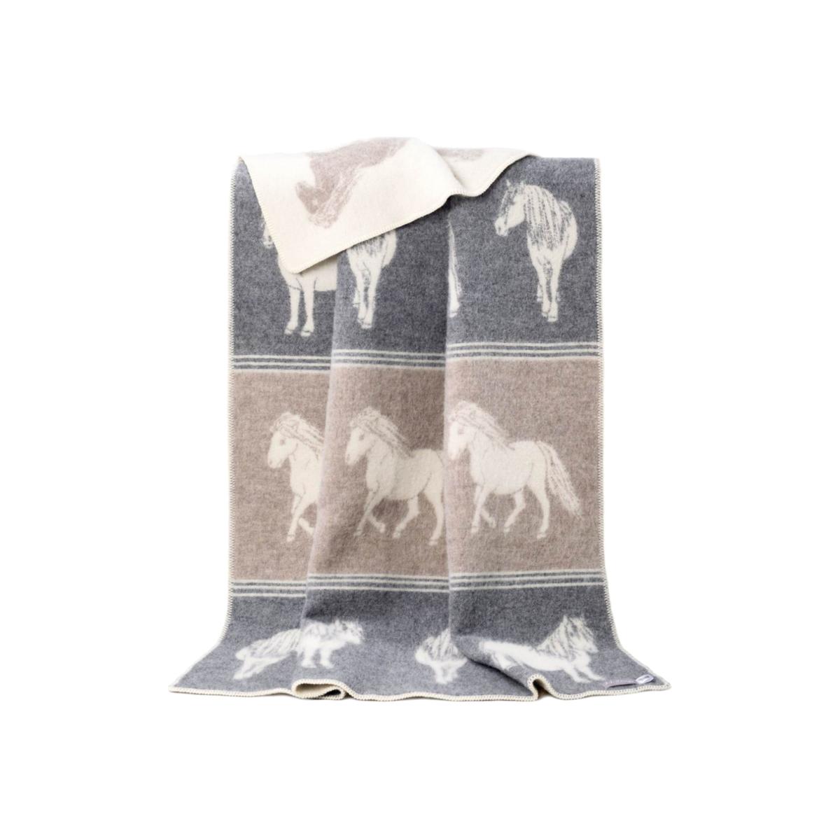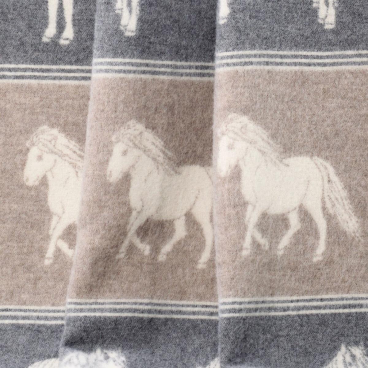 Brown / Grey / White Ponies Wool Blanket J. j.textile