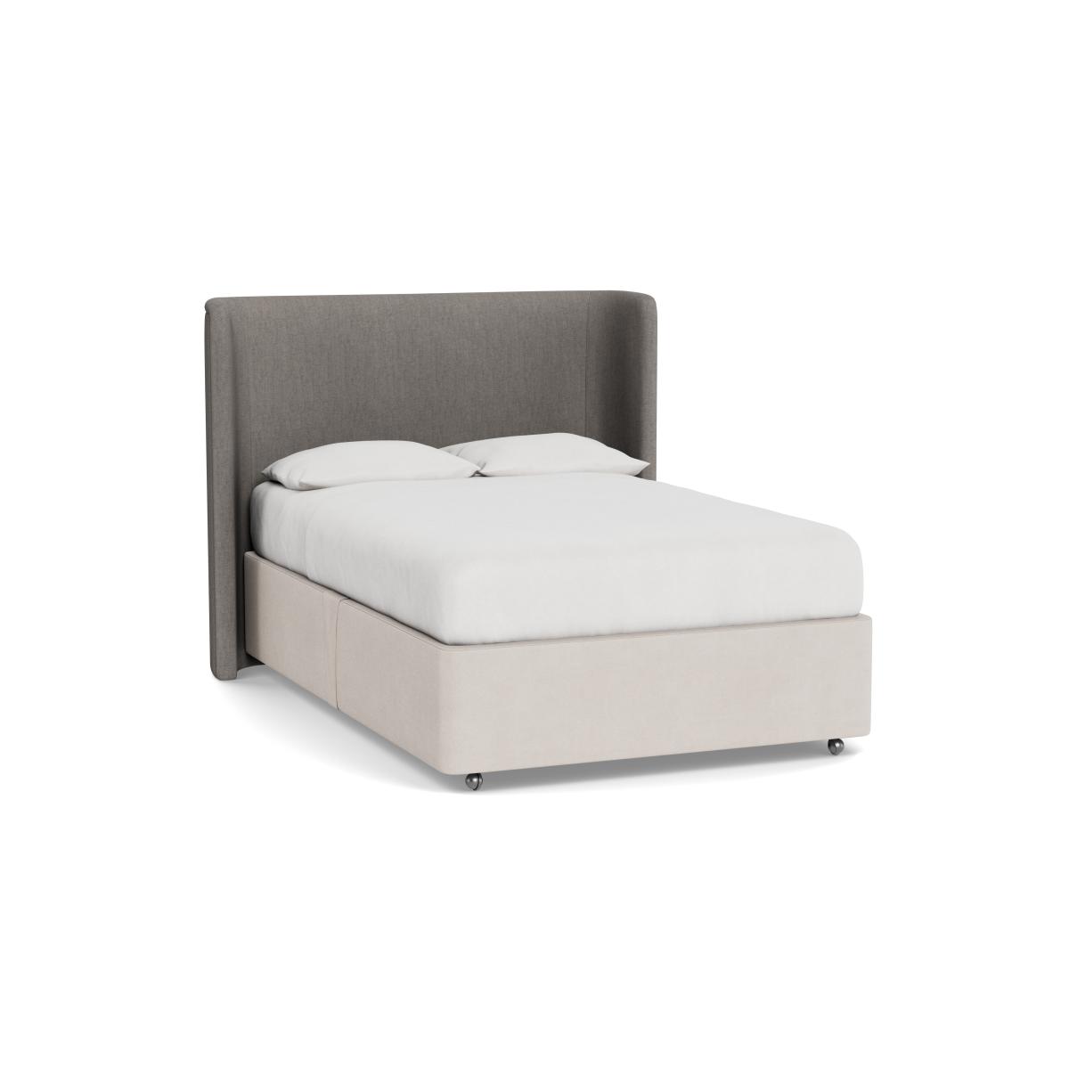 The new Monroe headboard effortlessly mixes generous proportions with feminine, sweeping lines. As well as creating a sense of scale and drama, the statement winged design creates a cocoon-like feel for a restful sleep. Produced in the UK, the Monroe headboard, featured here in an understated rustic linen, is available in all Heal's fabrics. Sitting upon a Heal's divan base in the same premium upholstery, this bed is perfect for your own creative escape.