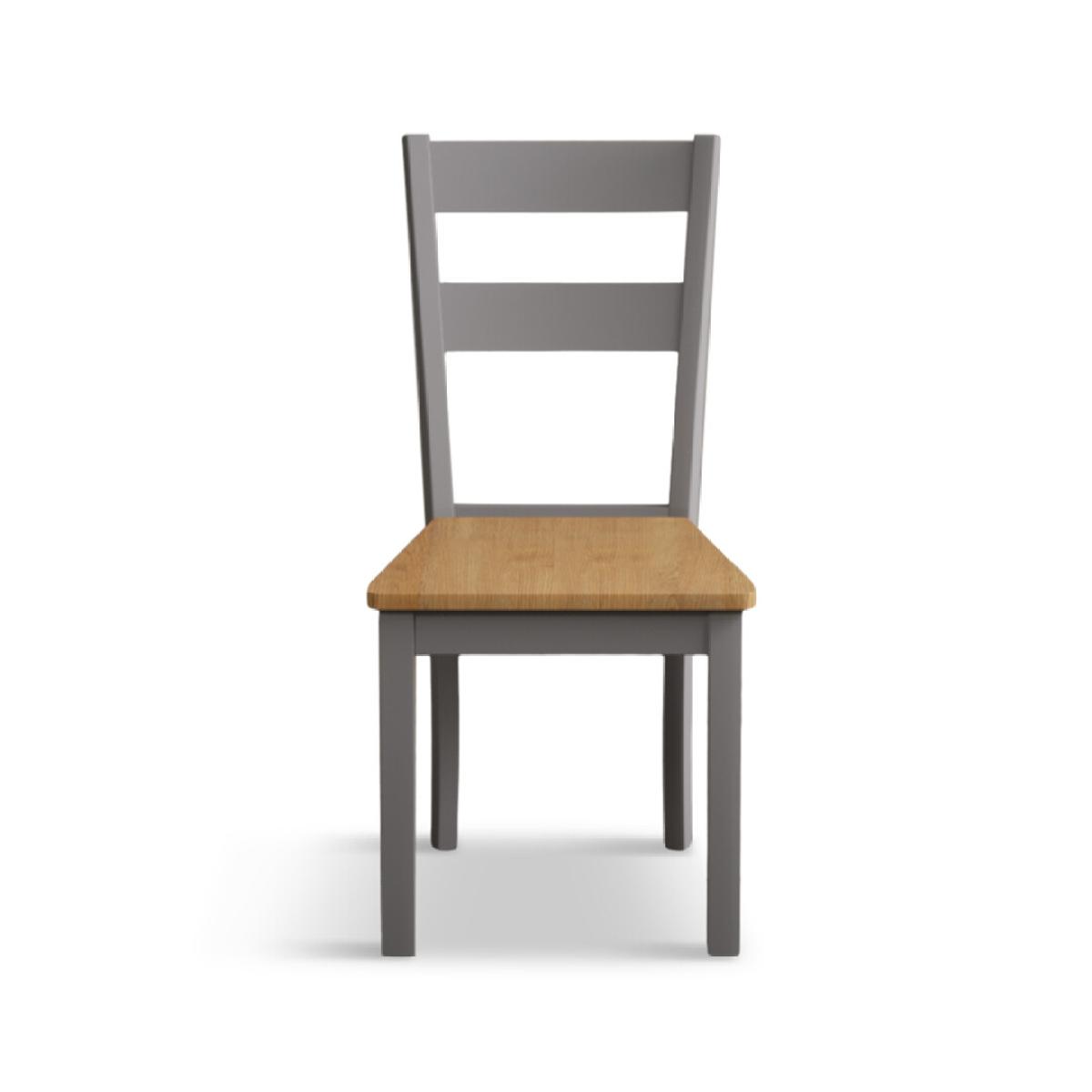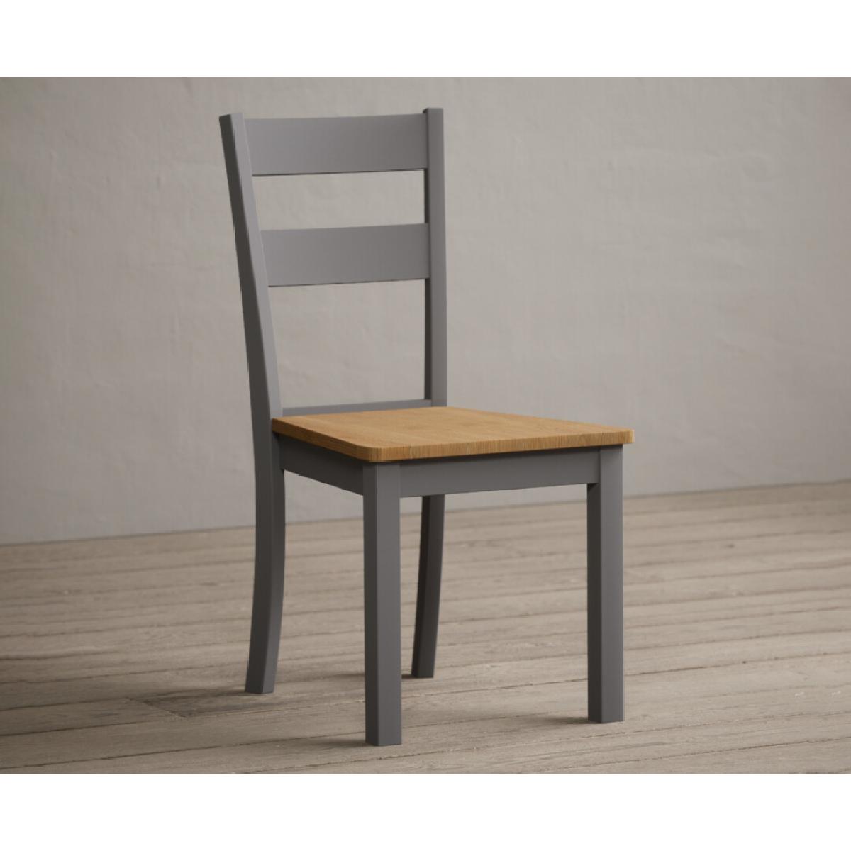 Kendal Light Grey Painted Dining Chairs with Oak Seat Pad feature grey-painted solid hardwood frames and comfortable oak seats.
