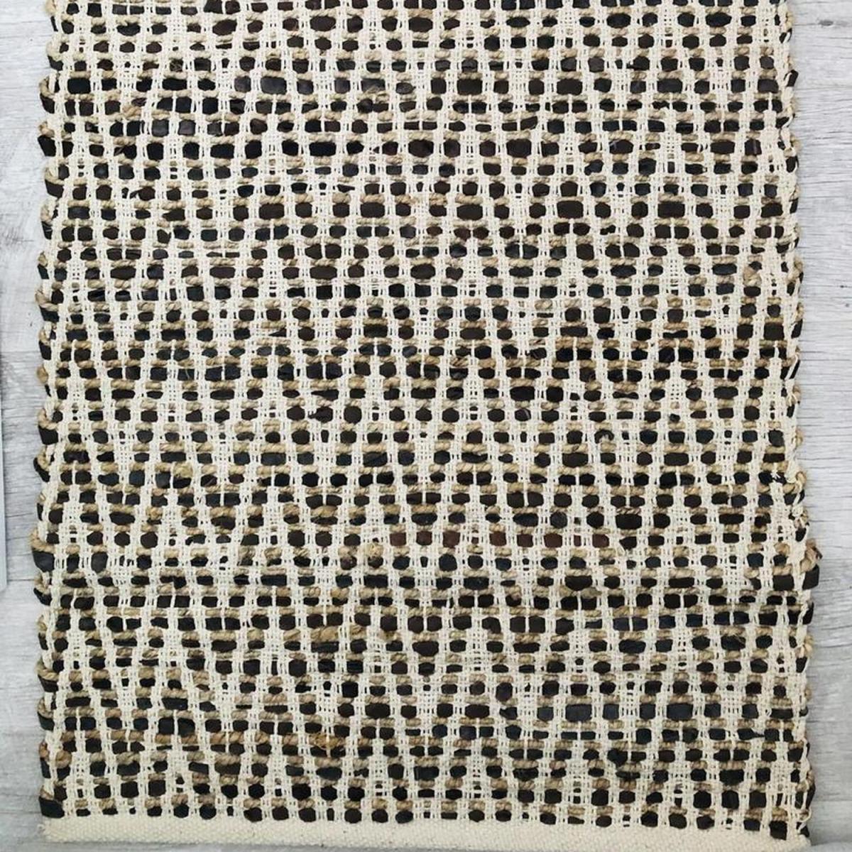This brown leather jute rug is a versatile piece that adds warmth and texture to both modern and rustic interiors. Its earthy tones work well with natural materials and neutral palettes, creating a cosy yet sophisticated vibe. I love pairing it with leather furniture, wooden accents, or even teamed with colourful textiles for a layered look. Practical styling tips include layering it under a glass coffee table for a contemporary feel, or using it to define a seating area in a larger open-plan space. Its durability makes it suitable for high-traffic zones, and it’s easy to maintain with regular vacuuming-perfect for adding a tactile, stylish element to any room.