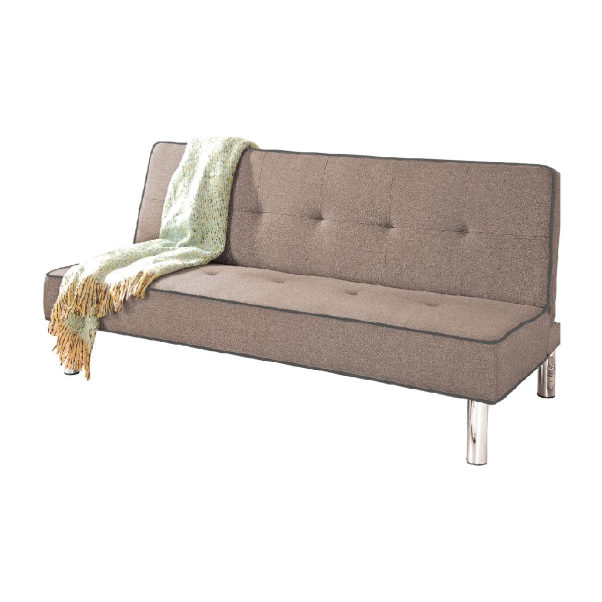 Stylish and practical, this modern fabric sofa bed is a perfect addition for any contemporary home and effortlessly converts from a comfortable 3 seater sofa into an ideal bed for two, perfect for when you have unexpected guests. Finely upholstered in a fashionable woven fabric with an elegant buttoned effect and classic white piping detail for a chic, modern look, this sofa is generously padded for a cosy night in. This versatile fold down sofa bed is made with a simple click-clack mechanism allowing it to transform into a comfortable bed in seconds. Simply pull the backrest forward until you hear the click and then lay it down into a flatbed. Convert into a sofa again by raising the backrest until it clicks into place. This sofa also has the added feature of a reclining setting for extra comfort.