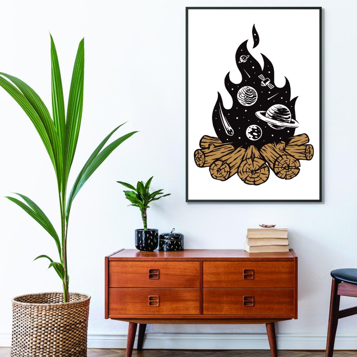 This print has a striking, contemporary look that works well in modern or eclectic interiors. I love how the dark, fiery design adds a bold focal point without overwhelming the space. It pairs nicely with earthy tones and natural textures, making it perfect for living rooms, bedrooms, or creative spaces that embrace a bit of atmospheric drama. For styling tips, consider framing it in a sleek black or wooden frame to enhance its visual impact, and hang it where it can be appreciated at eye level. It also works well as part of a gallery wall, mixed with other artworks or prints that have a similar colour palette or abstract theme. Overall, it’s a versatile piece that delivers a punch of personality and colour to any room.