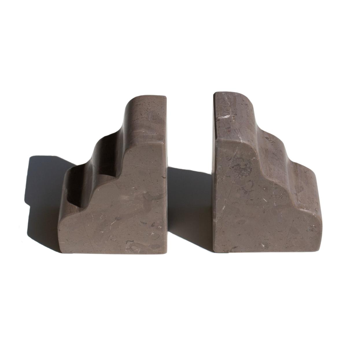 An exclusive collaboration with @maisonrogue. Our design inspiration began with a look at vintage bookends, objects that created nostalgia for libraries of times past. Everything we had seen was angular so we aimed to create something new. We wiggled our pen, in an attempt to undo the rigid lines, and fell in love with the resulting shape. Wrapped around a stack of books, these pieces appear as clouds. Individually each piece acts as a little sculpture. Using Nero or St. Laurent marble, these bookends are fabricated by hand. Each curve is ground down meticulously and finished in a rough honed texture. They are made sustainably utilizing marble offcuts. Sold individually.