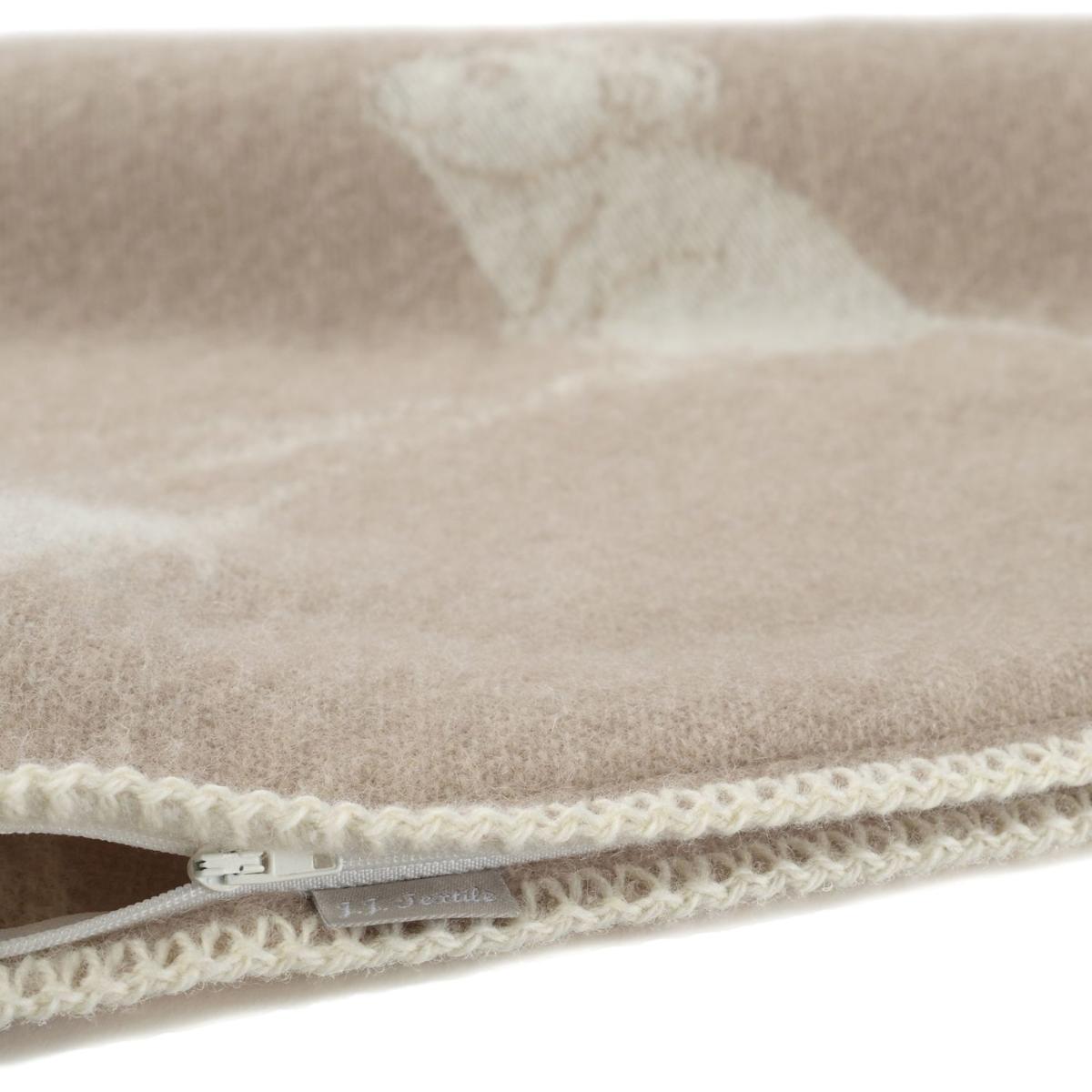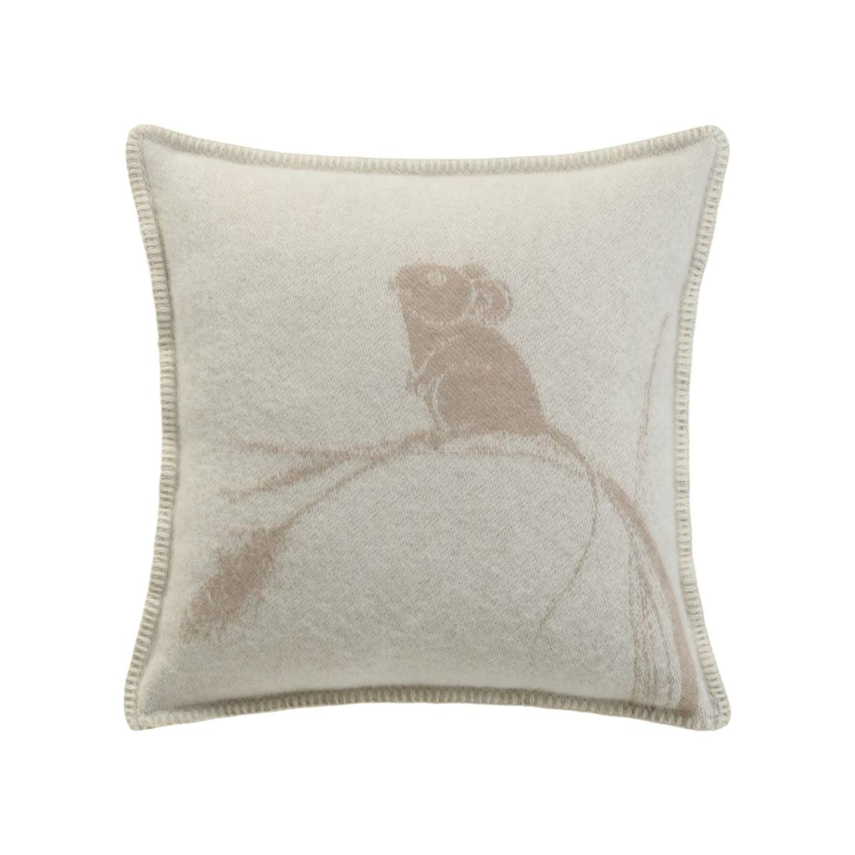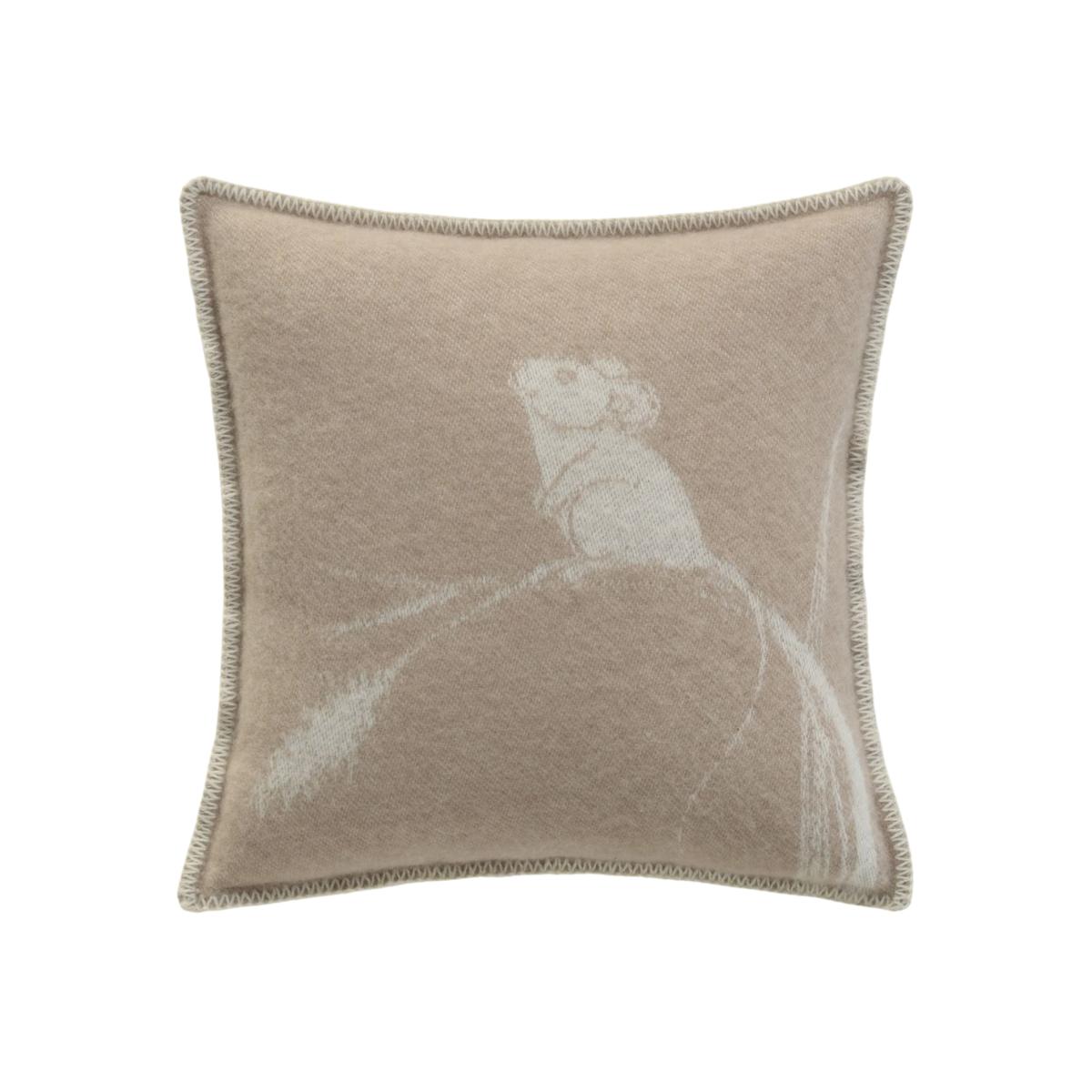 Immerse yourself in an enchanting world with our Mouse Cushion, a delightful companion to our Mouse Blanket. This charming cushion, sized at 45 x 45 cm and crafted from 100% Pure Wool, features a warm beige and off-white colour scheme. A convenient zip closure makes washing easy and the reversible design, revealing an inverted colour scheme on the flip side, offers versatility. Designed to match our Mouse Blanket perfectly. Happy living with friendly designs!