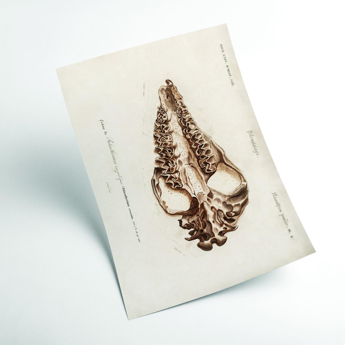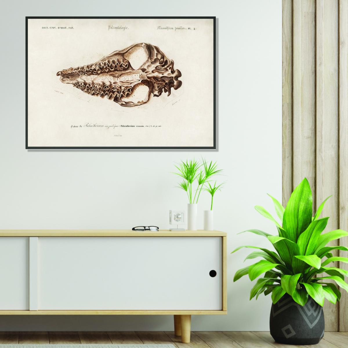 I love this print for its vintage scientific appeal and understated character. The Brown Odd-Toed Unulate looks particularly effective when paired with minimalist interiors or used as a statement piece in a neutral-toned scheme. It works well in spaces like home offices, living rooms, or even hallway galleries where it can serve as a conversation starter. For practical styling tips, consider framing it with a simple matte finish and mounting it slightly off-centre above furniture or in a grid with other prints for a curated look. Its classic, slightly industrial vibe adds a touch of scholarly charm without overwhelming the space.