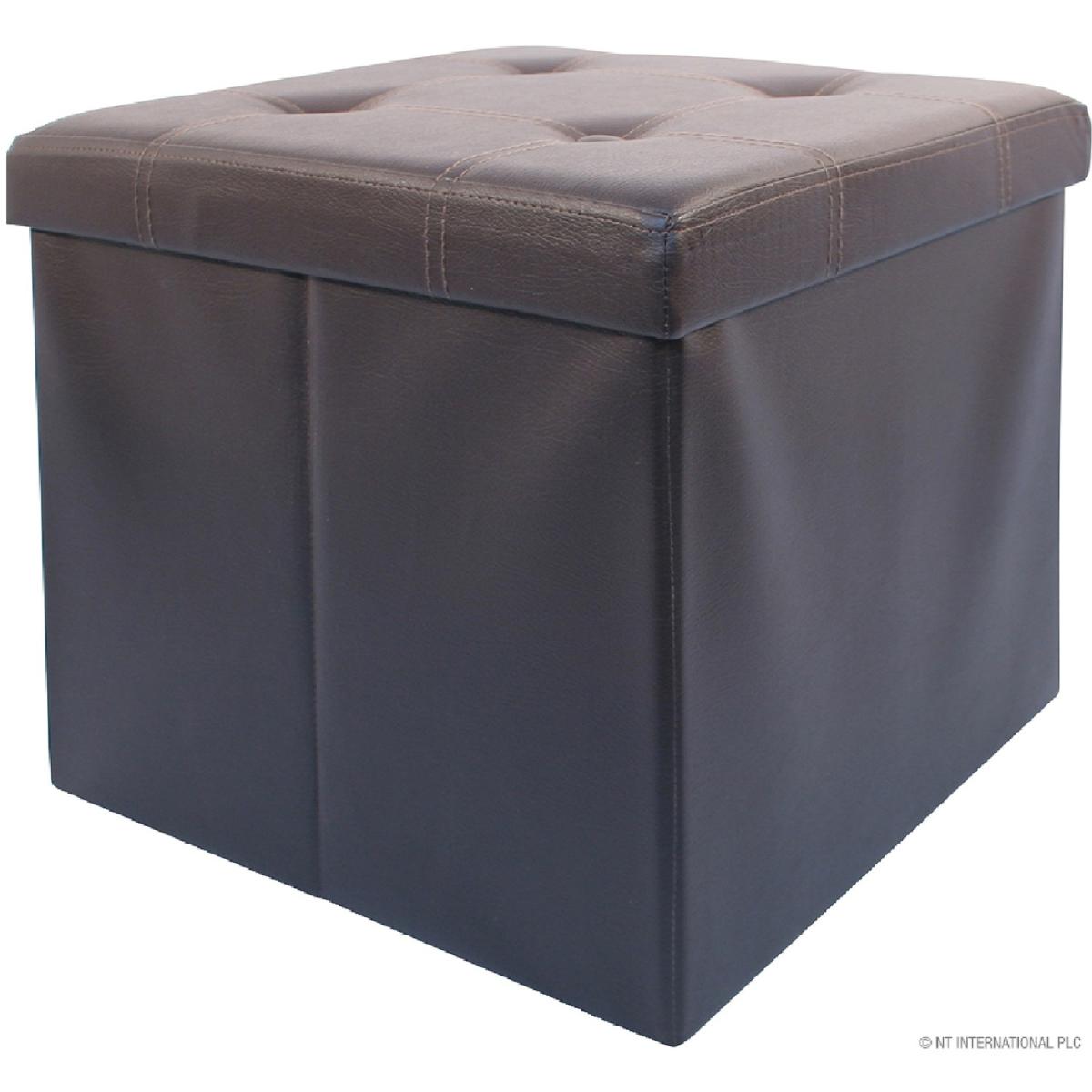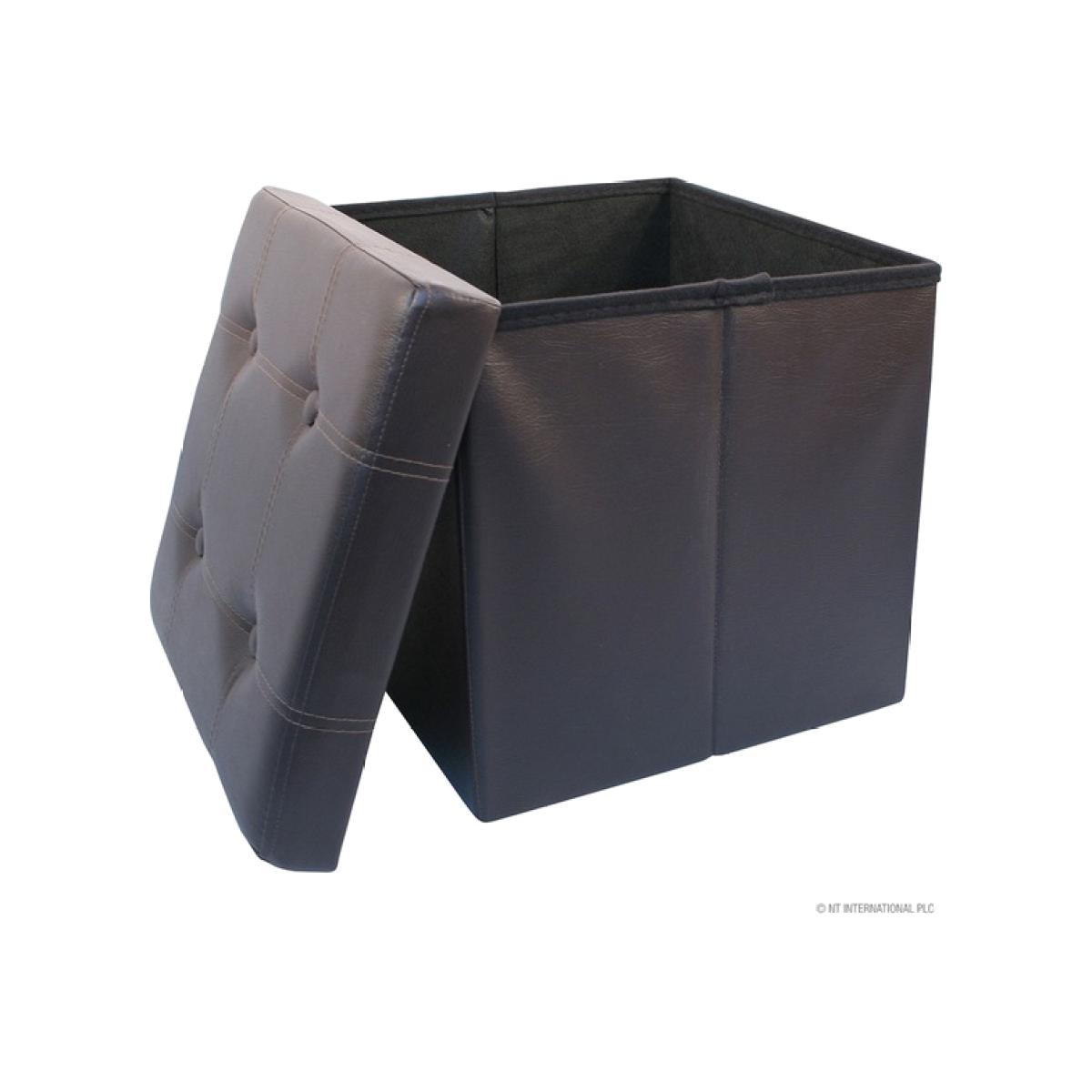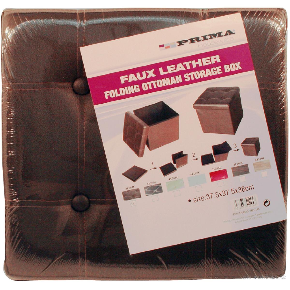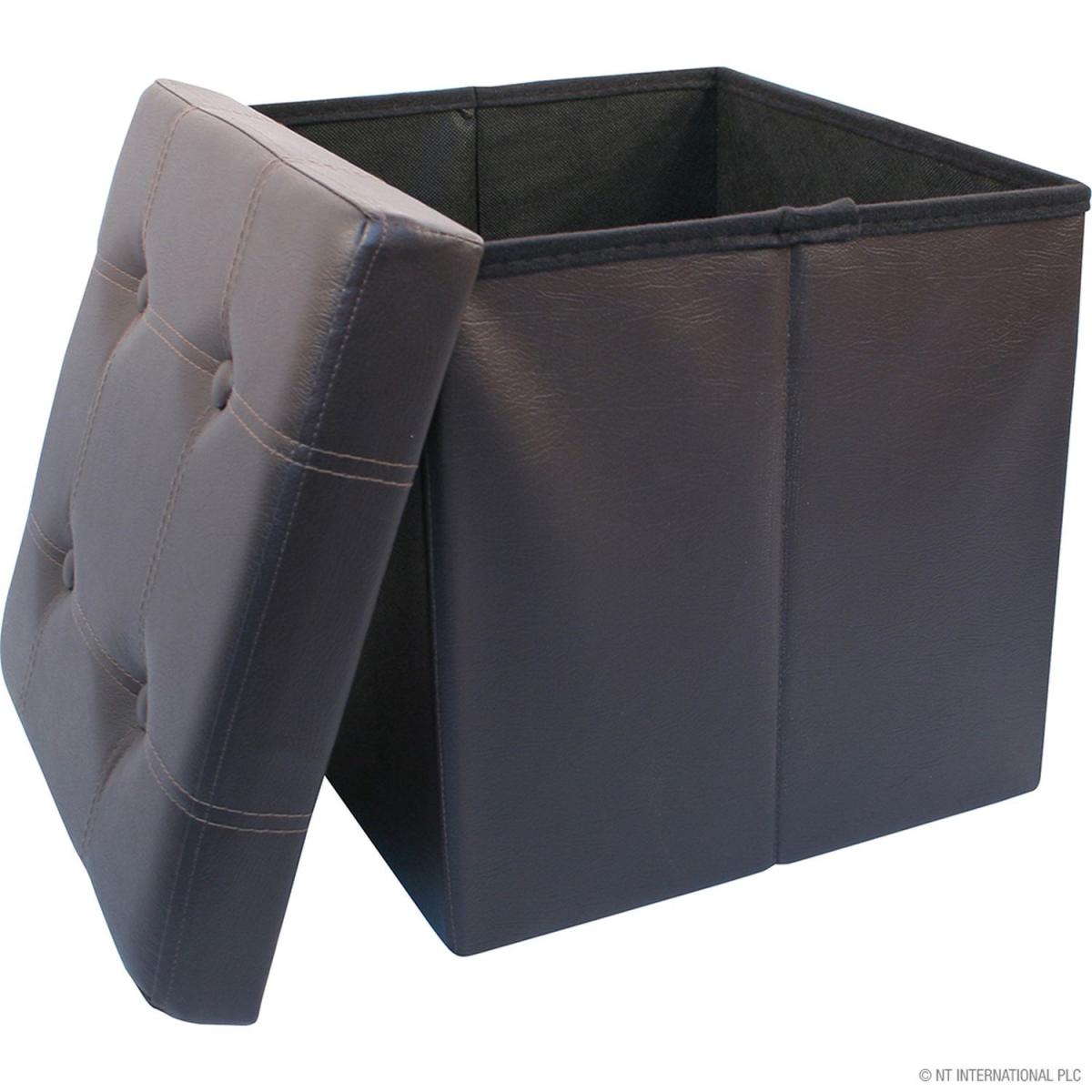 Brown faux leather folding ottoman storage cube. This handy collapsible ottoman storage cube is a great storage solution for all your needs. The padded elegant style lid adds elegance to your indoor space. Measuring 37.5cm x 37.5cm x 38cm gives a generous storage space for use all around your home or office. It has a sturdy frame construction to give it strength and durability for all kinds of storage around your home. Complimenting any room with the natural brown colour, this box would make a great storage solution for toys, towels, clothes, books or magazines, blankets and much more. With its collapsible design, the box is also perfect for storing away when not in use without taking up to much space which also makes it great for portable use too!