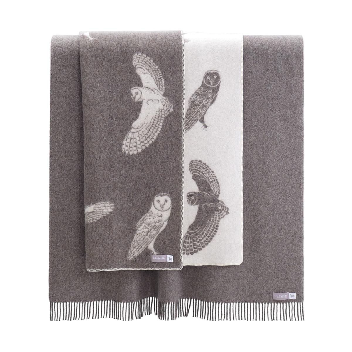 Twit Twoah! This stitched wool blanket is sure to make an impact in any room. Available in a beautiful brown shade reminiscent of the magnificent tawny owl itself and made from a durable mix of 80% pure wool and 20% cotton. Perfect for nesting with loved ones or keeping warm during late nights under the stars. J.J. Textile deals in exclusive woollen and cotton textile products, designed with love and passion by Jurate Jakstaite.