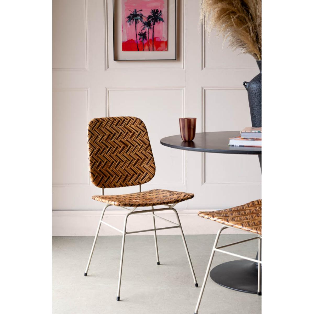 Ready to give your dining space a rustic, bohemian glow-up? Introducing the Brown Patterned Rattan Dining Chair – the most beautiful mix of relaxed charm and effortless style. With its beautifully woven natural rattan seat, this dining room chair is all about those easy, earthy textures we’re obsessed with. The rich brown detailing woven through this rattan furniture adds depth and warmth, giving it a chic and coastal feel. The legs are an eye-catching mix of cream and stone tones, bringing the perfect amount of contrast while keeping the whole look soft, neutral and inviting. It’s the perfect kitchen chair for dining tables, sunny breakfasts, or even as a statement piece in a cosy corner. Pair it with a lovely tablecloth, some fresh flowers, and you have nailed the aesthetic. - Brown Patterned Rattan Dining Chair - Measures: W45cm x H83cm x D43cm - Seat H: 45cm - Materials: Iron & Rattan