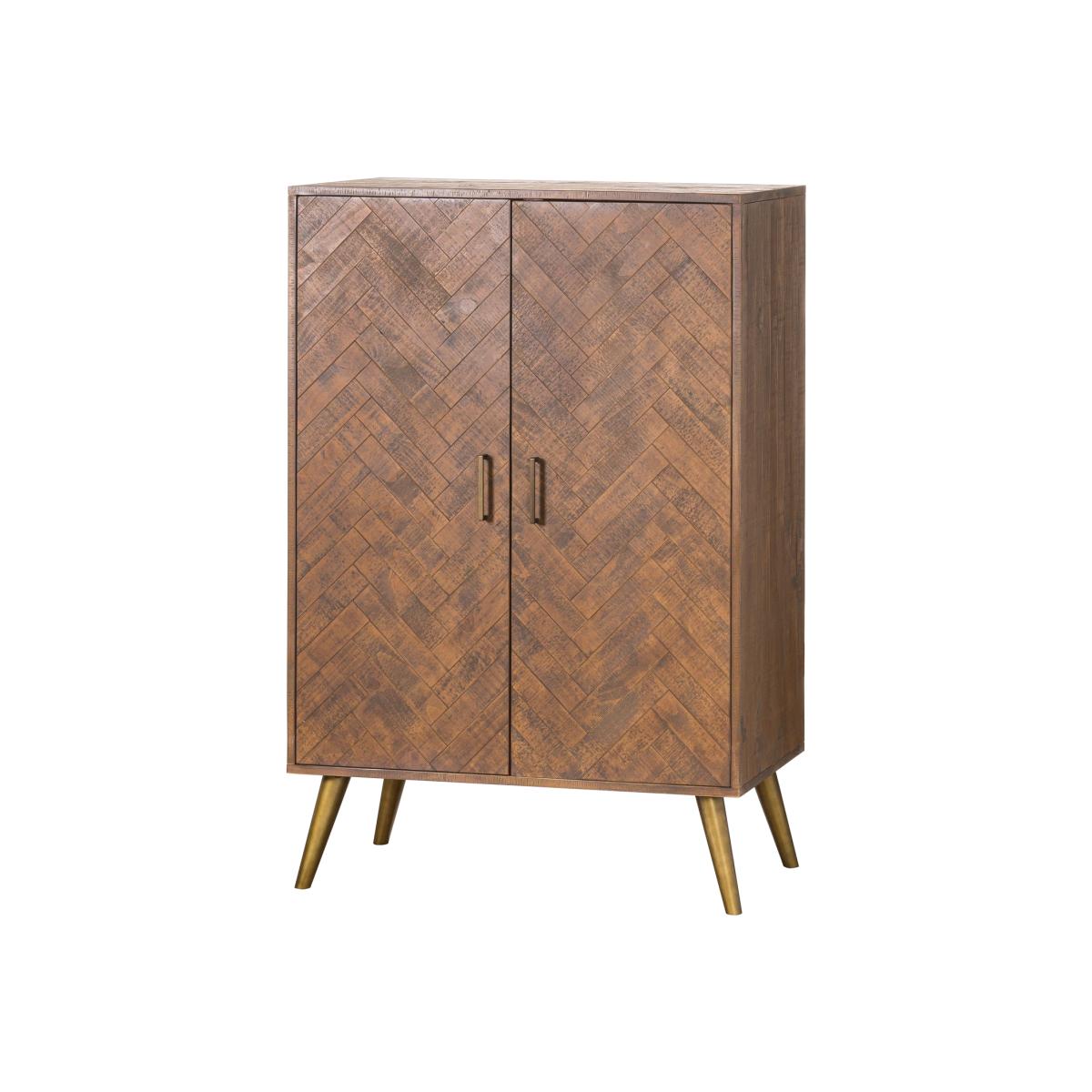 Brown Pine Herringbone Drinks Cabinet - Havana
