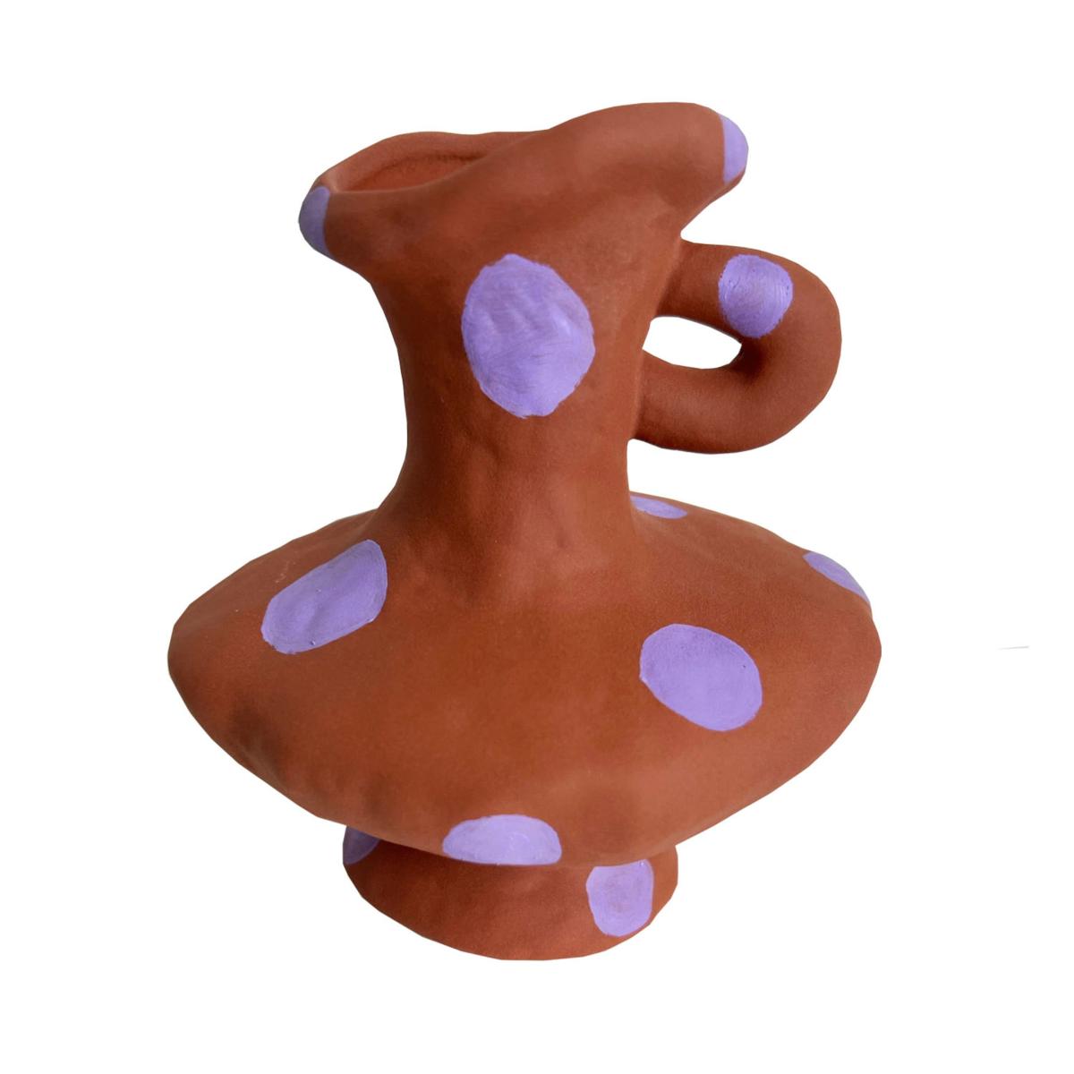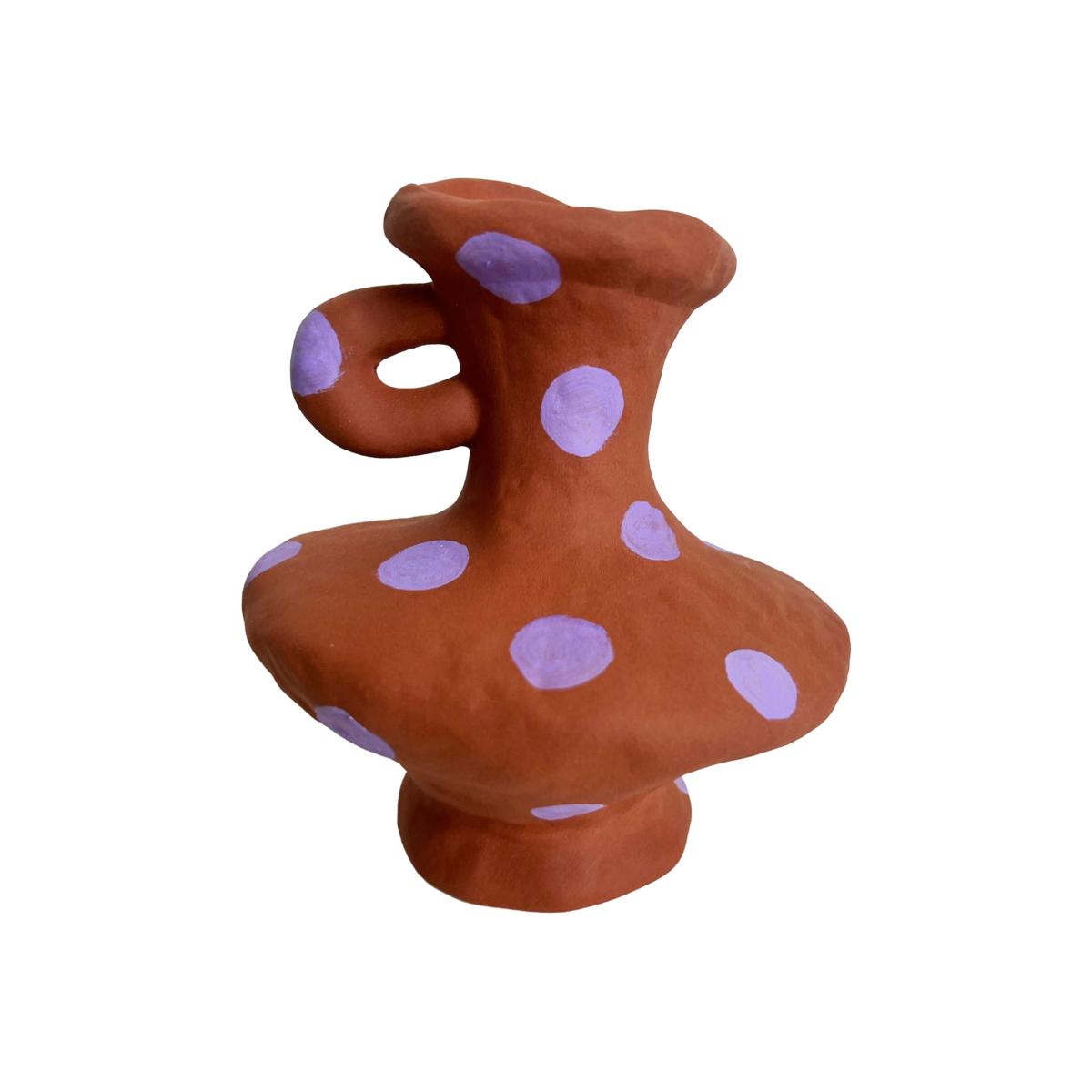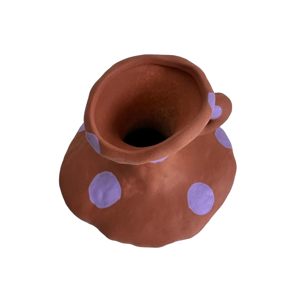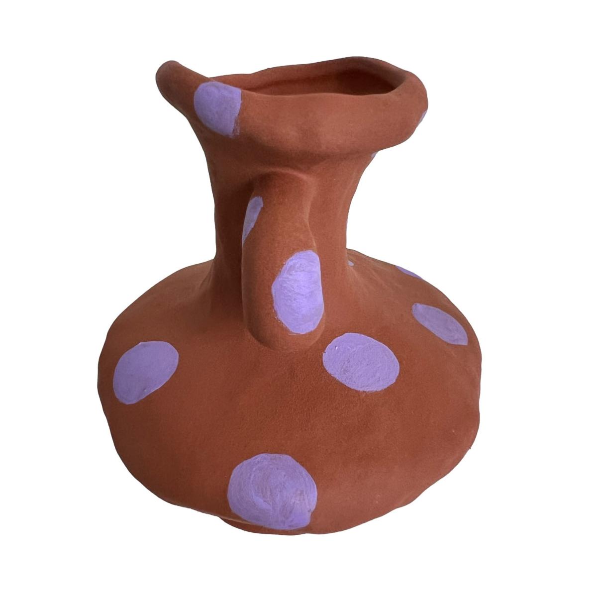 Brown / Pink / Purple Clay And Lilac Polka Handle Vase | Quillattire